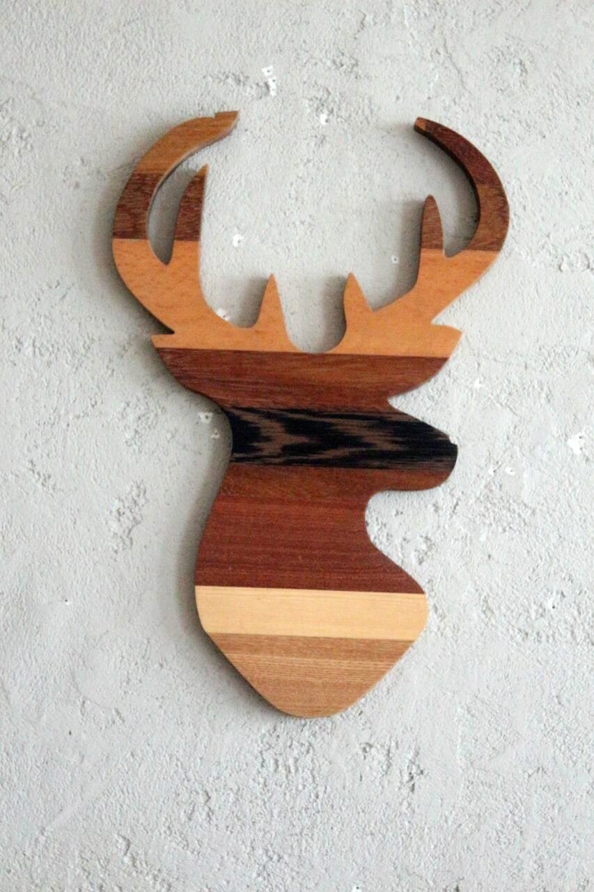 Decoratiune de perete, Wood Deer, 33x2x50 cm, Maro