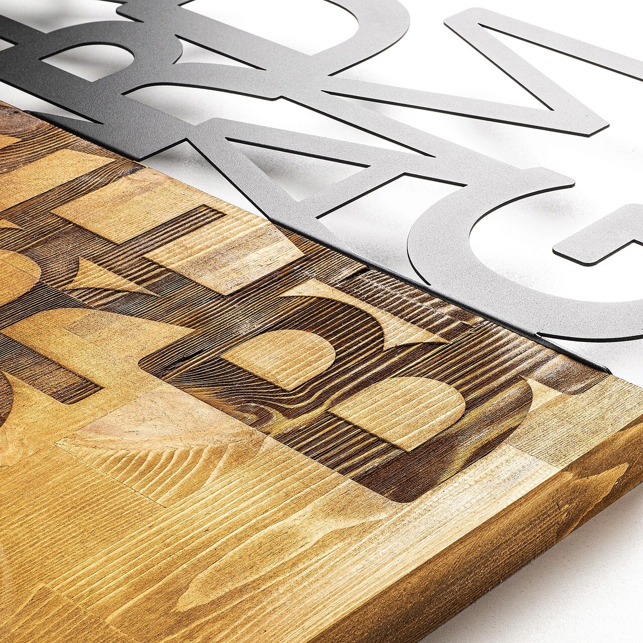 Decoratiune de perete, Work Hard Dream Big, 50% lemn/50% metal, Dimensiune: 48 x 58 cm, Nuc / Negru