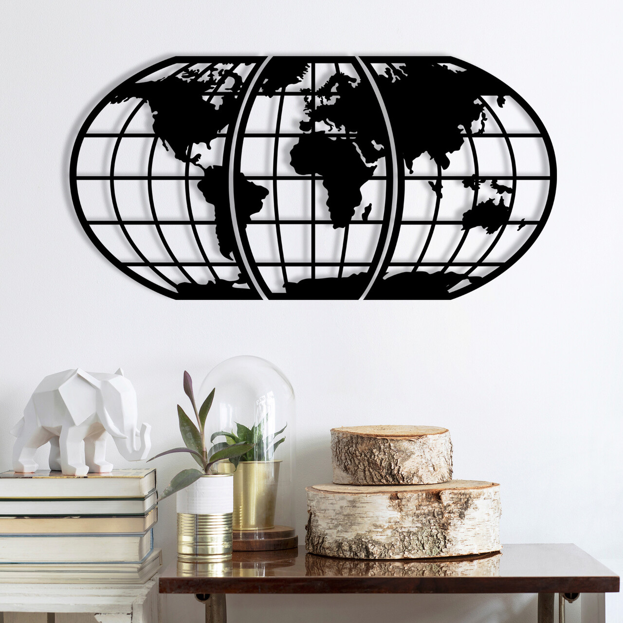 Decoratiune de perete, World Map 11, metal, 116 x 58 cm, negru