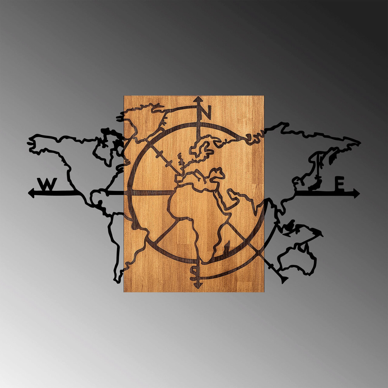 Decoratiune de perete, World Map, 50% lemn/50% metal, Dimensiune: 118 x 3 x 70 cm, Nuc negru