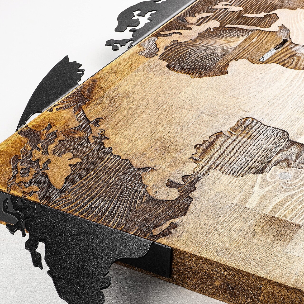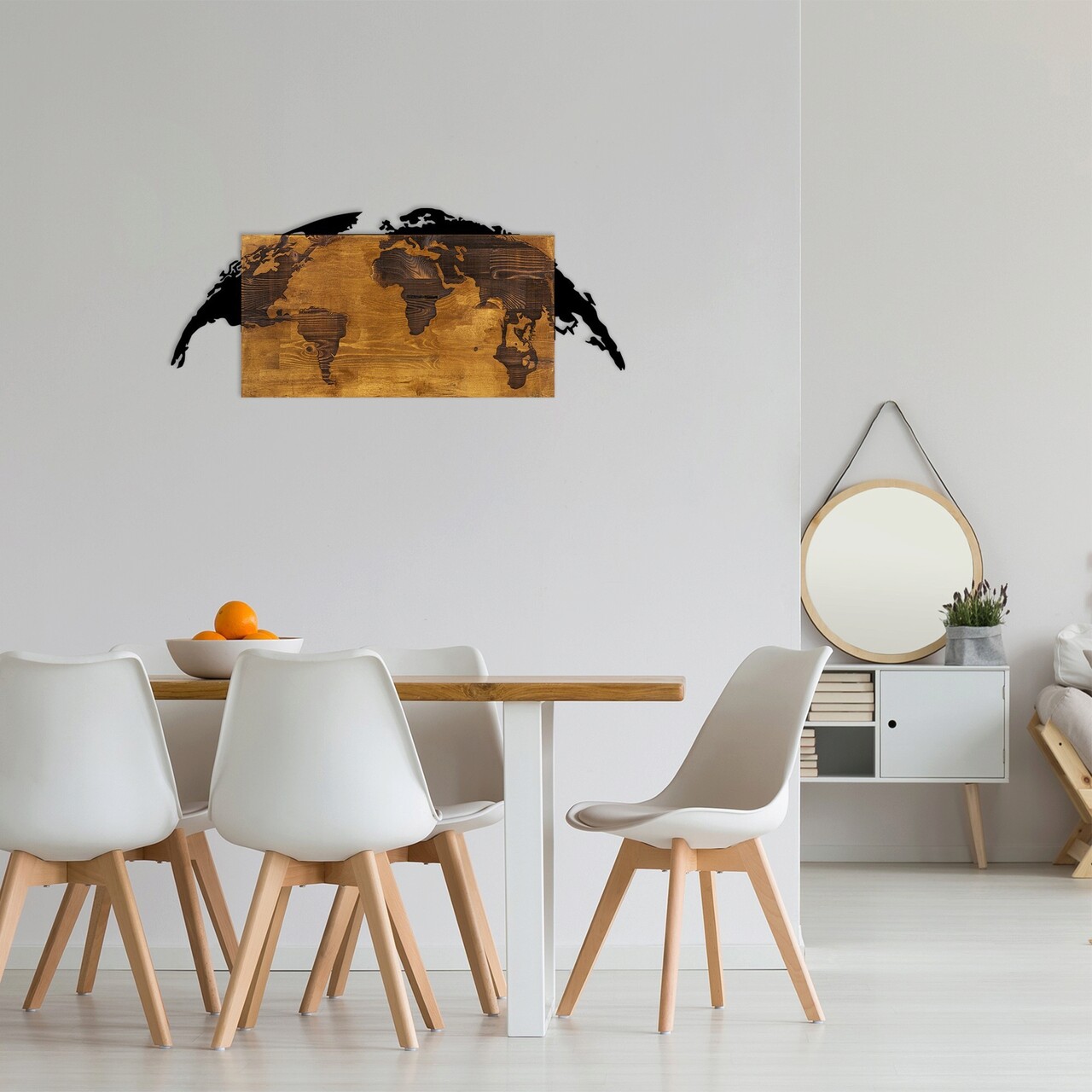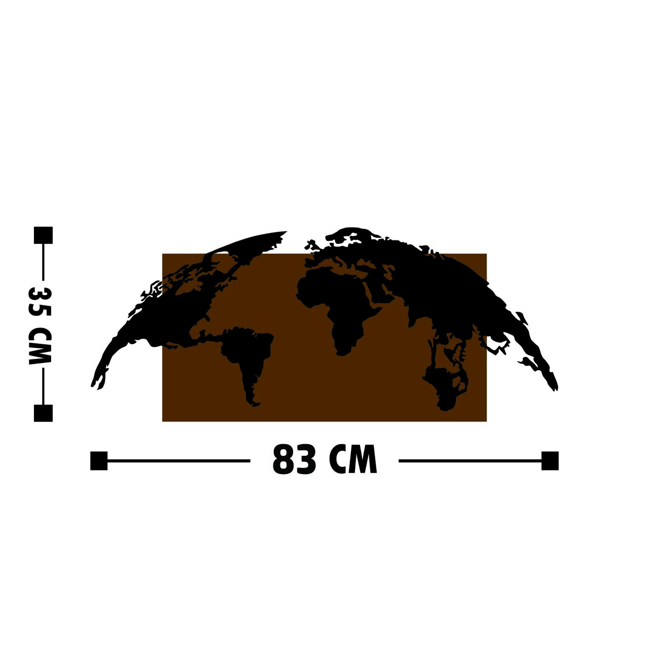 Decoratiune de perete, World Map, 50% lemn/50% metal, Dimensiune: 83 x 35 cm, Nuc / Negru