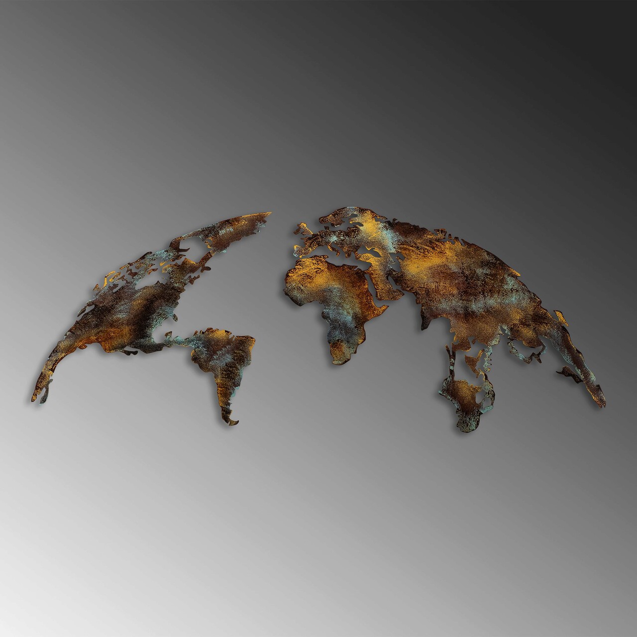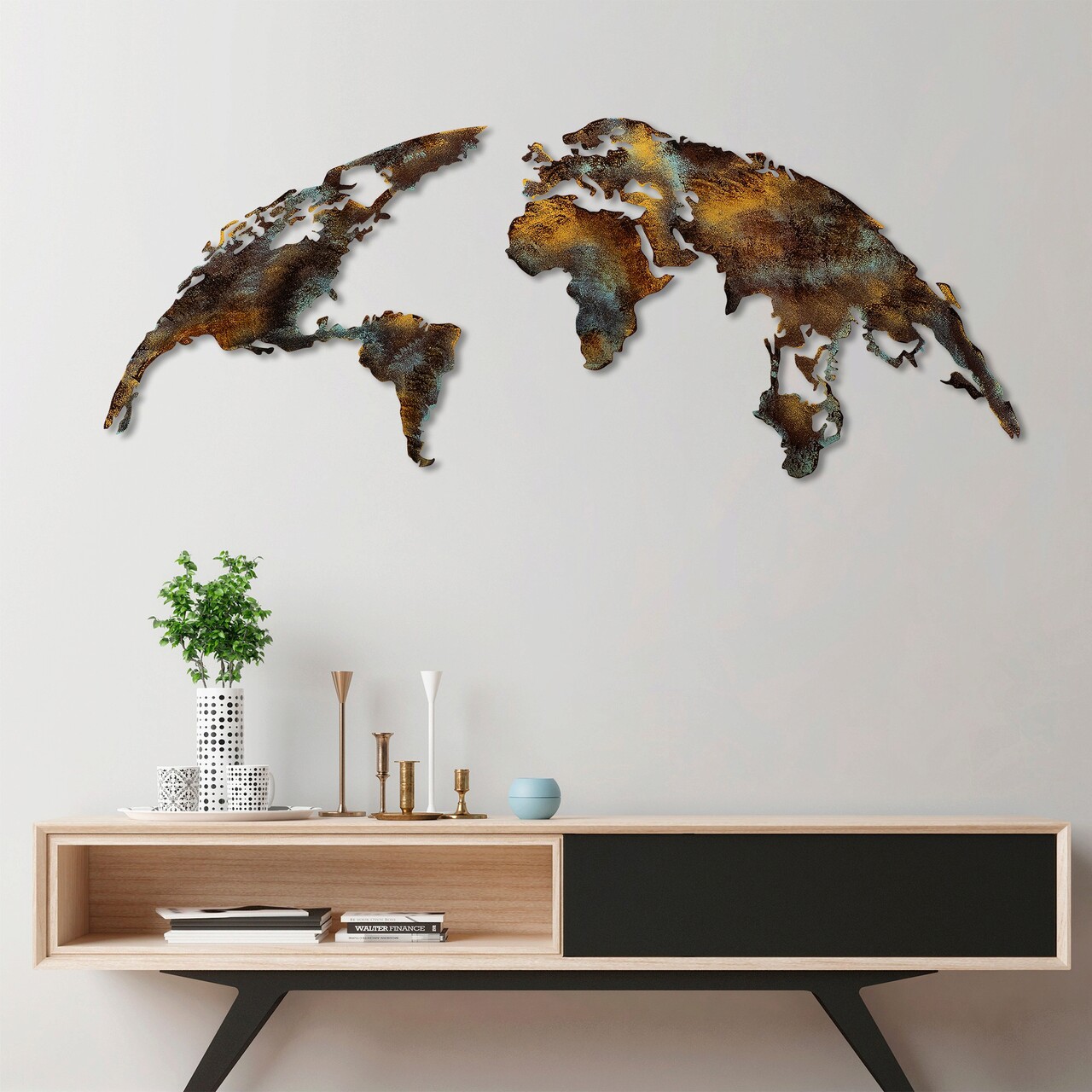 Decoratiune de perete, World Map Medium, Metal, 150 x 59 cm, Multicolor