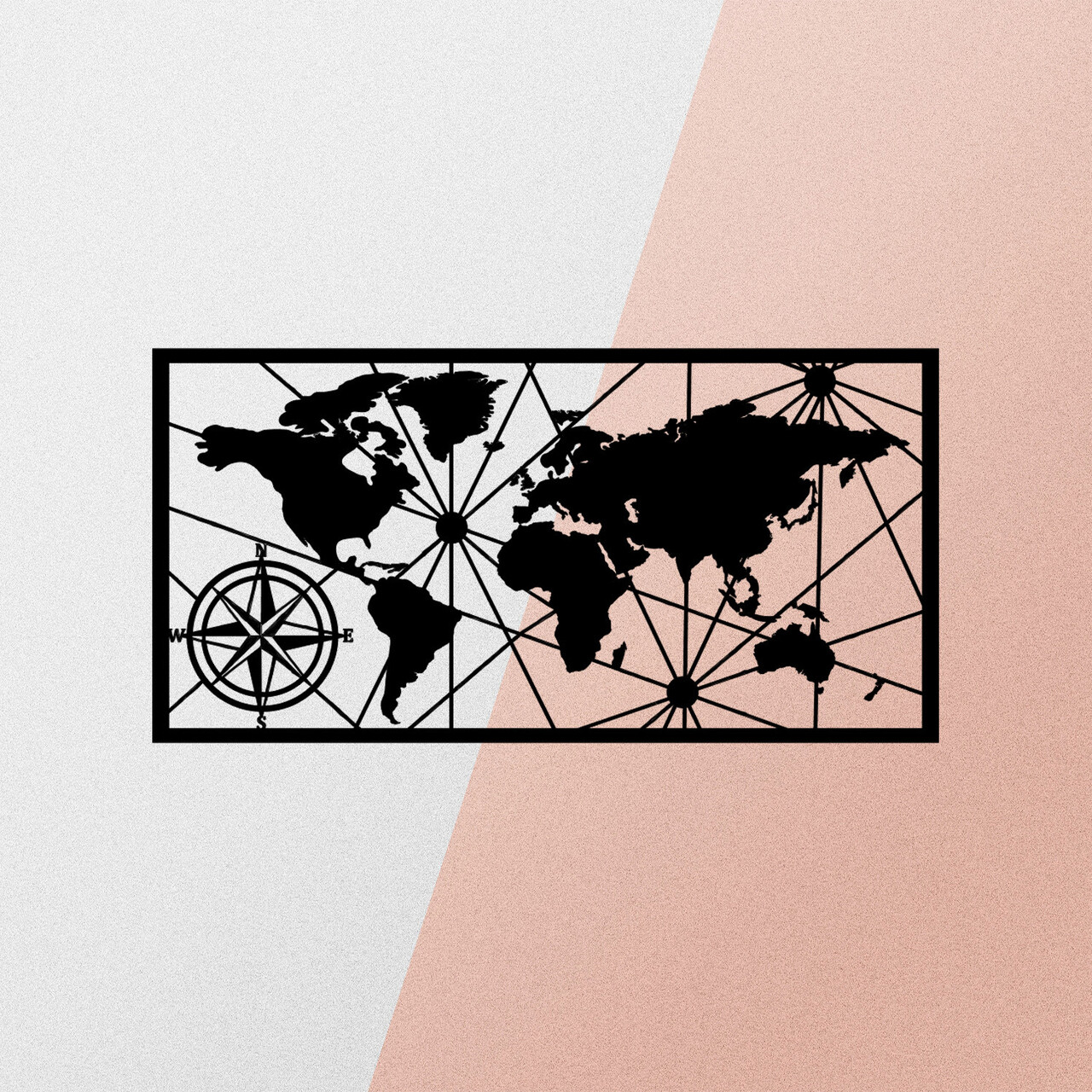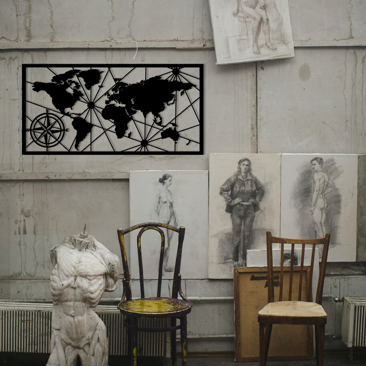 Decoratiune de perete, World Map Medium Metal Wall Decor, metal, 100 x 50 cm, negru