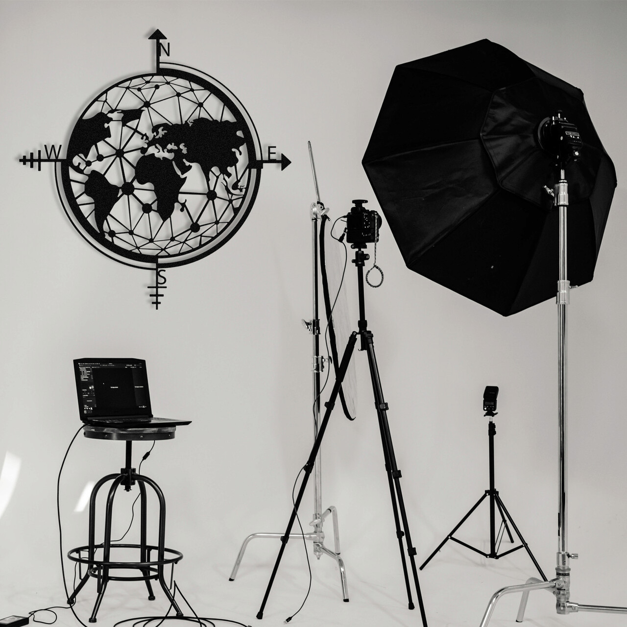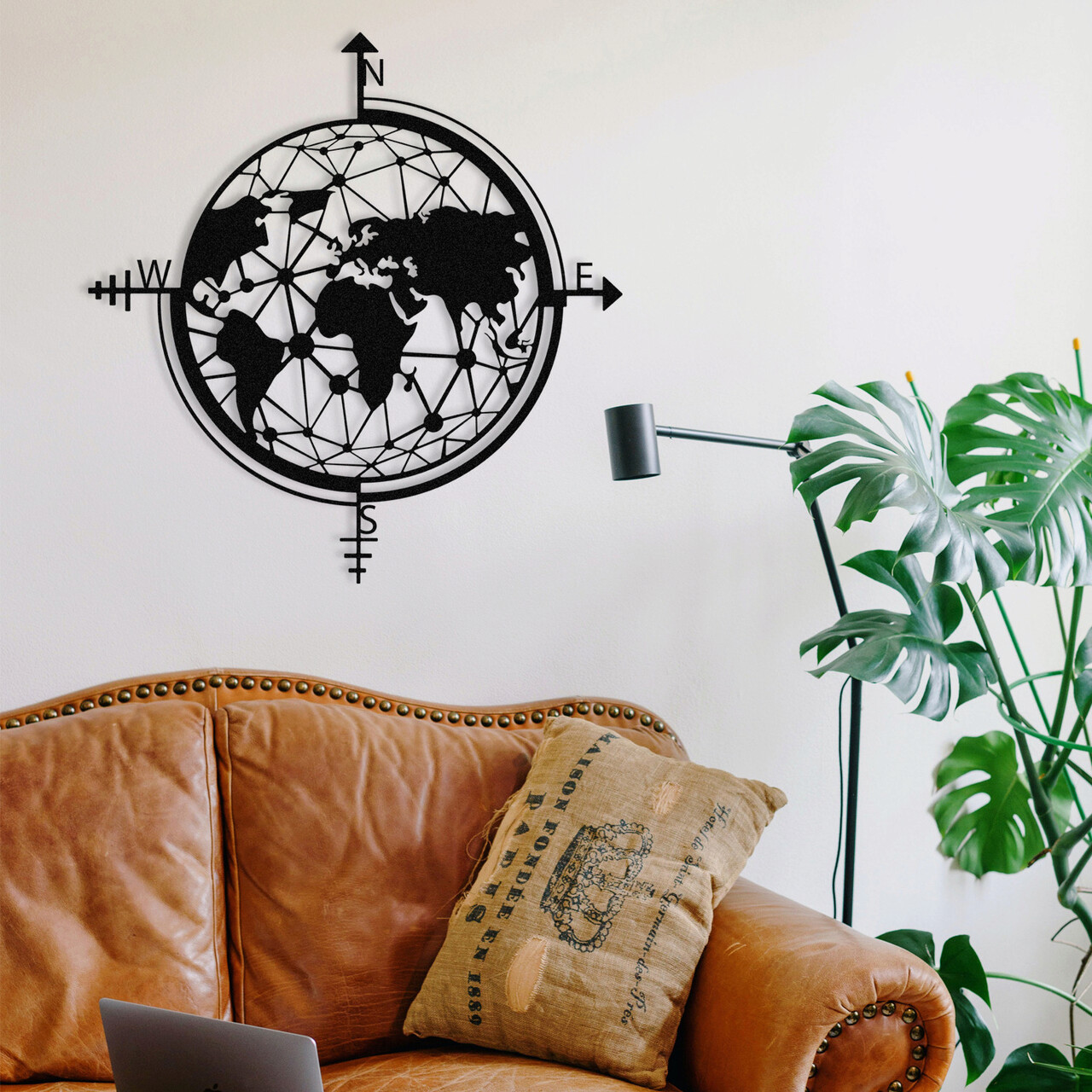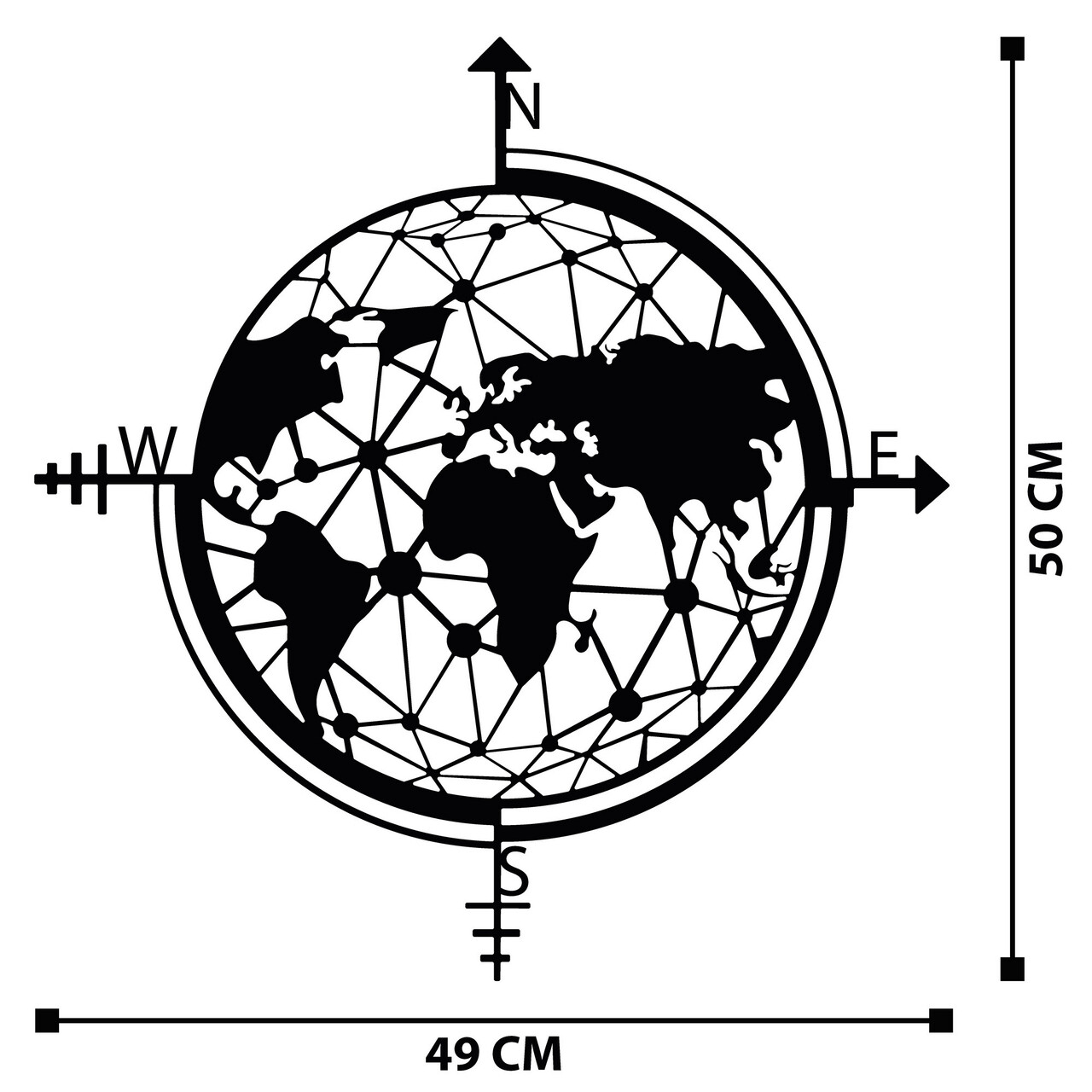 Decoratiune de perete, World Map, metal, 49 x 50 cm, negru