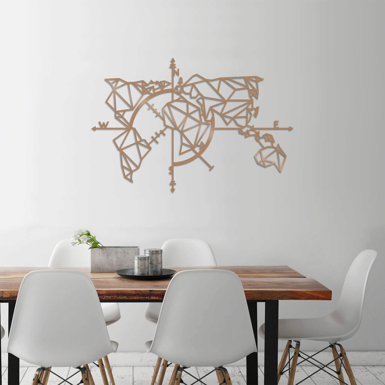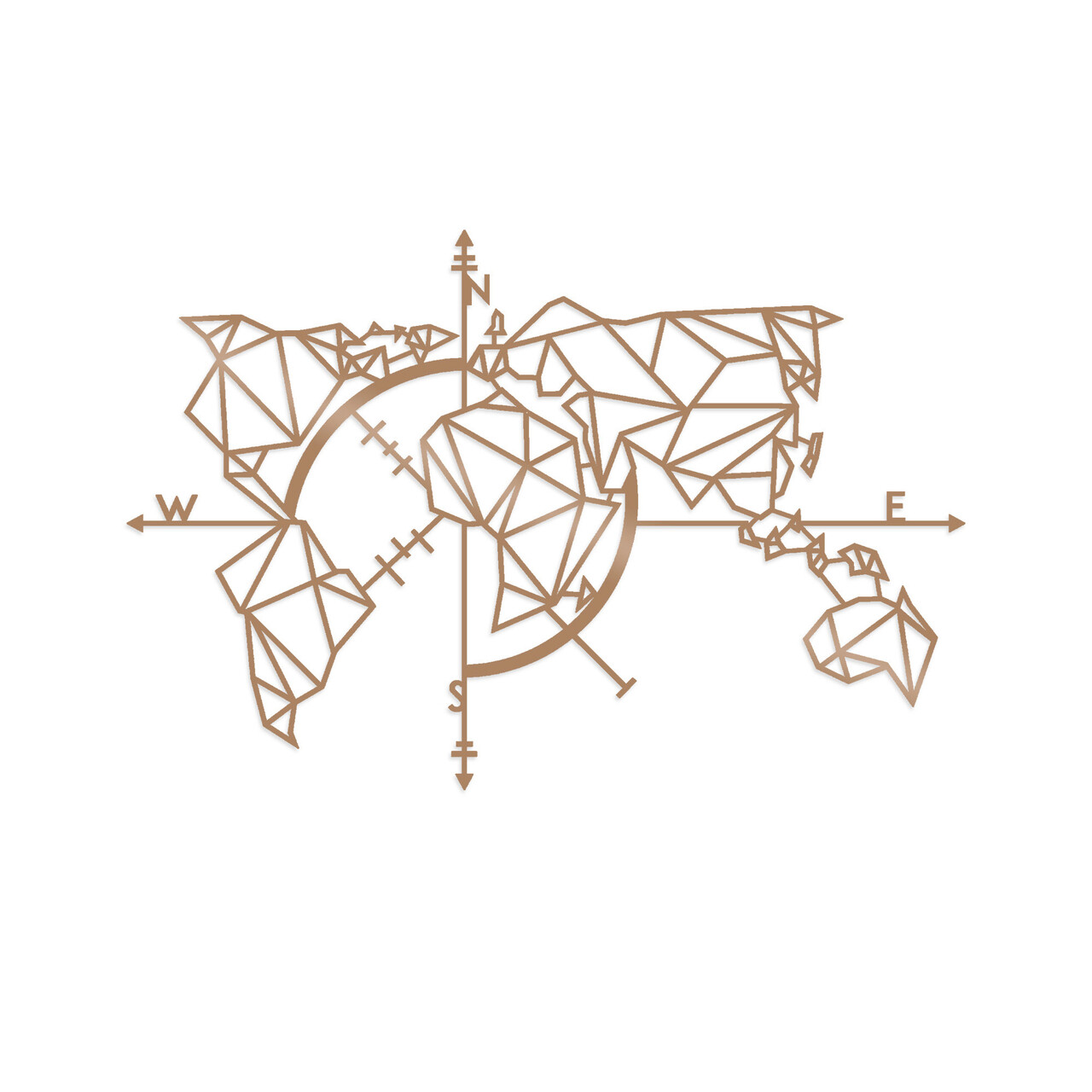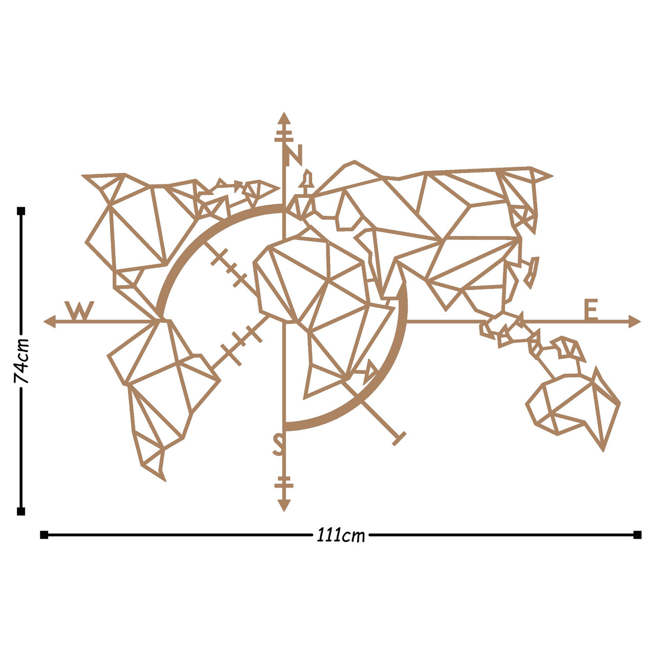 Decoratiune de perete, World Map Metal Decor 2, Metal, Dimensiune: 111 x 74 cm, Cupru