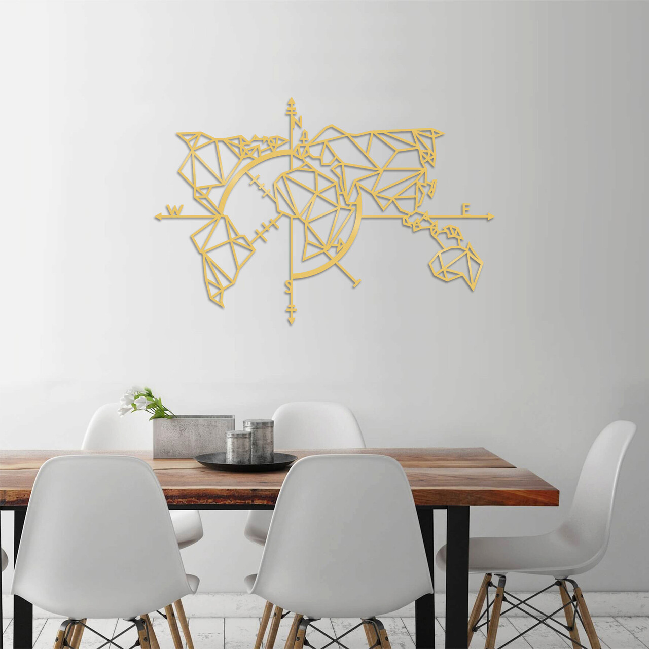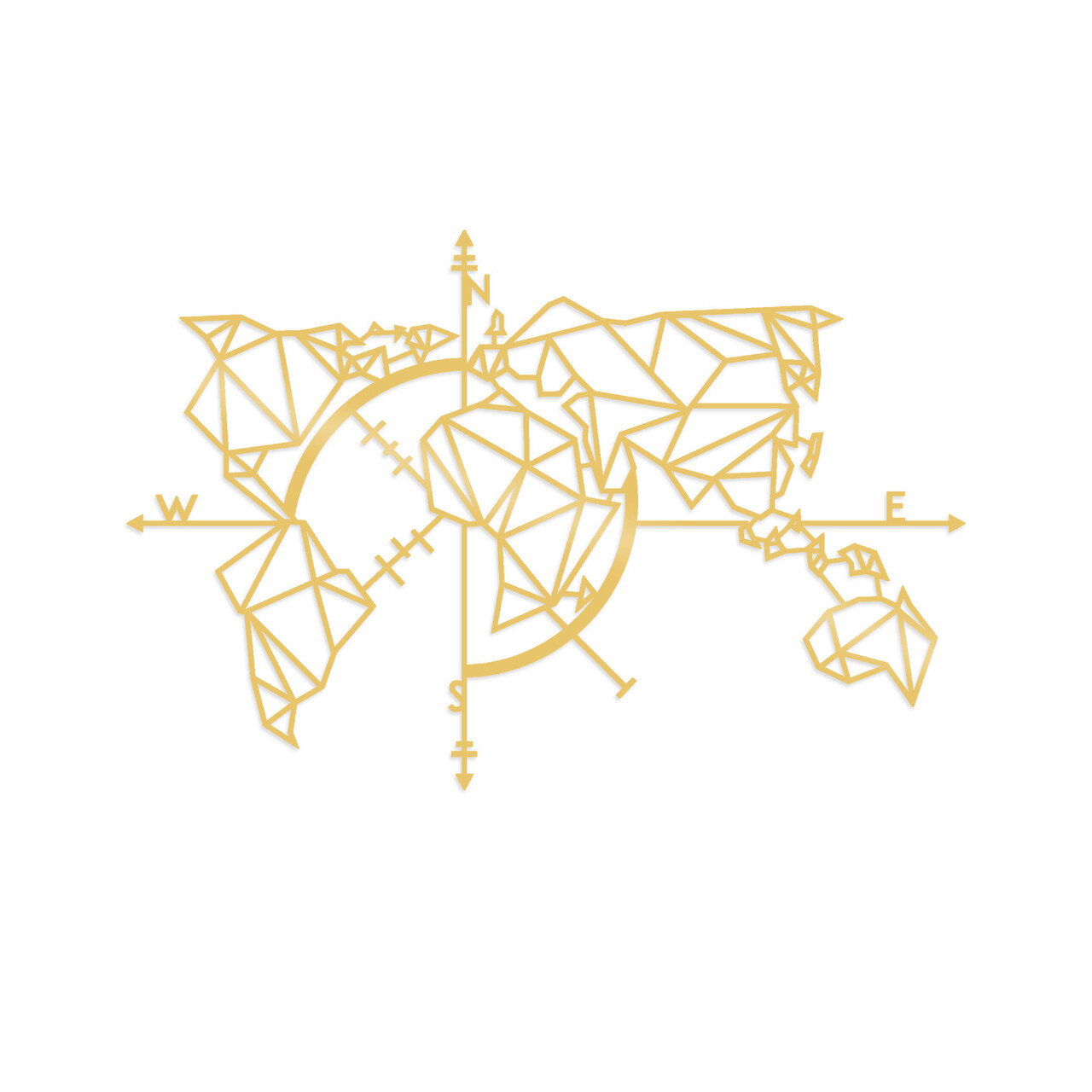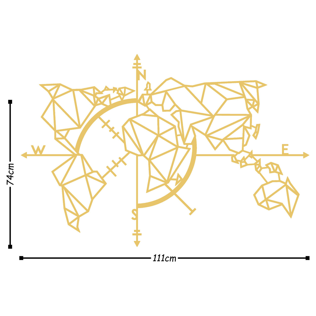 Decoratiune de perete, World Map Metal Decor 2, Metal, Dimensiune: 111 x 74 cm, Auriu