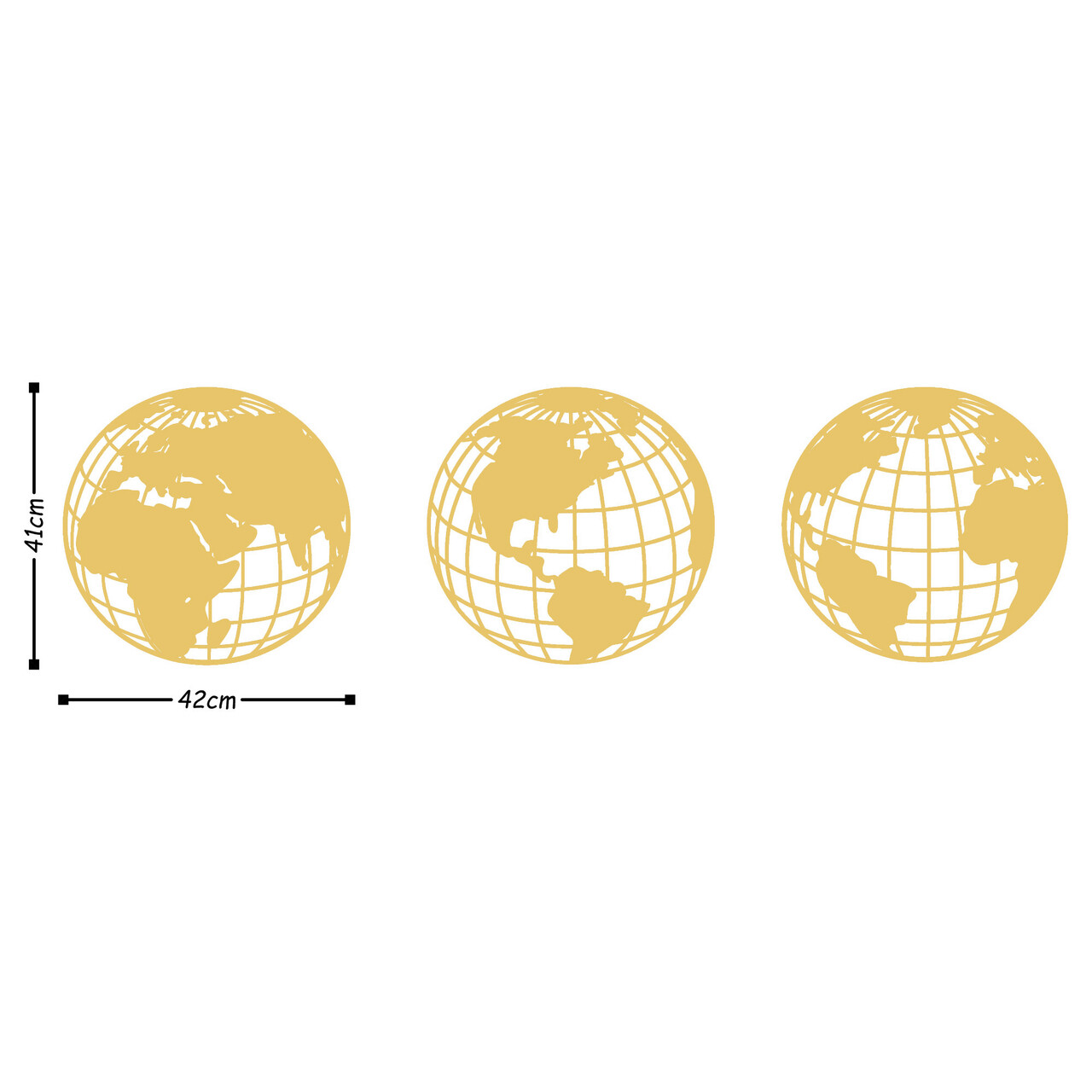 Decoratiune de perete, World Map Metal Decor 3, Metal, Dimensiune: 42 x 41 cm, Auriu