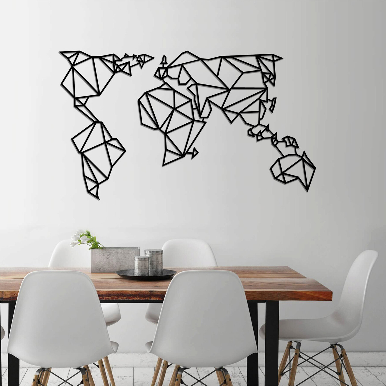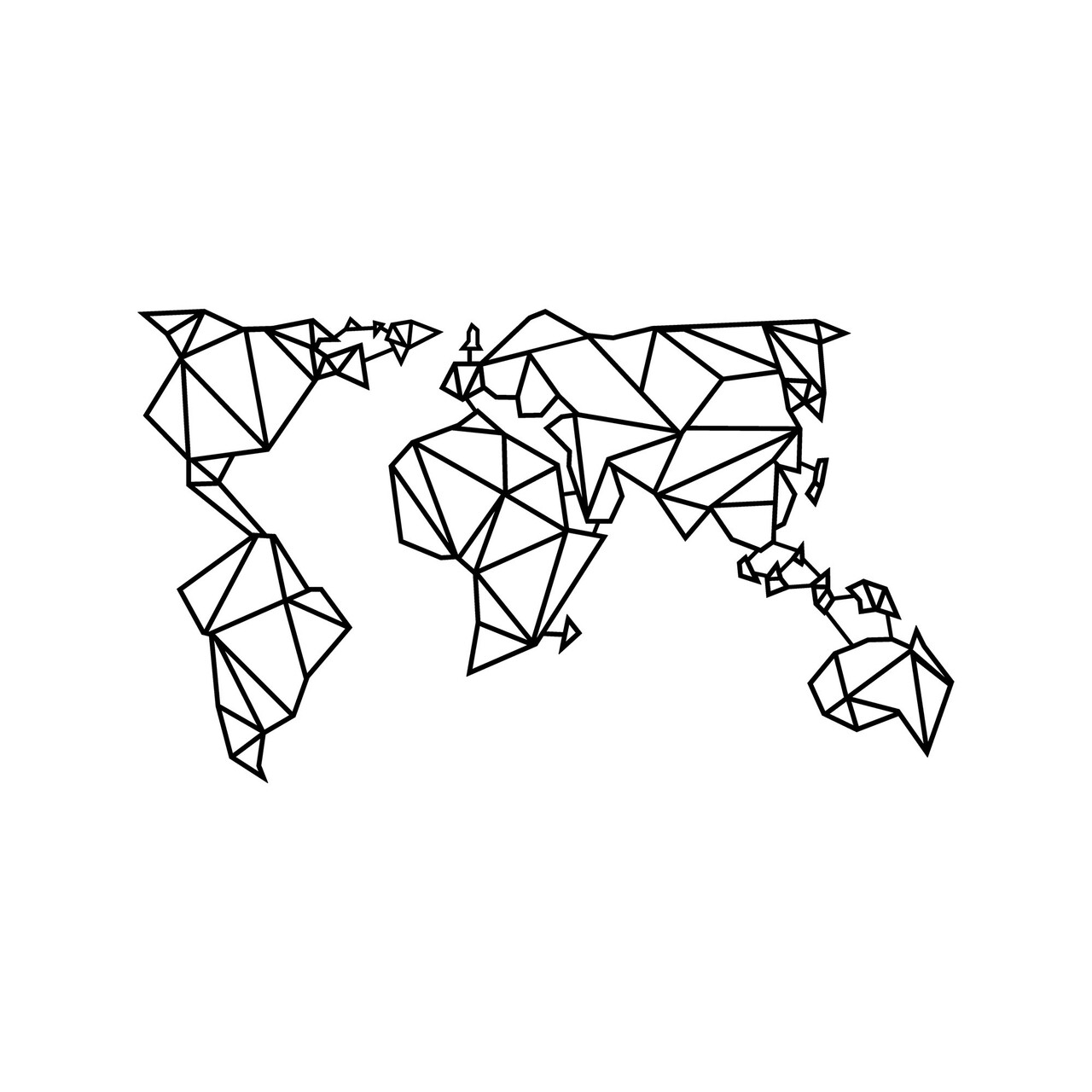 Decoratiune de perete, World Map Metal Decor 4, Metal, Dimensiune: 140 x 80 cm, Negru