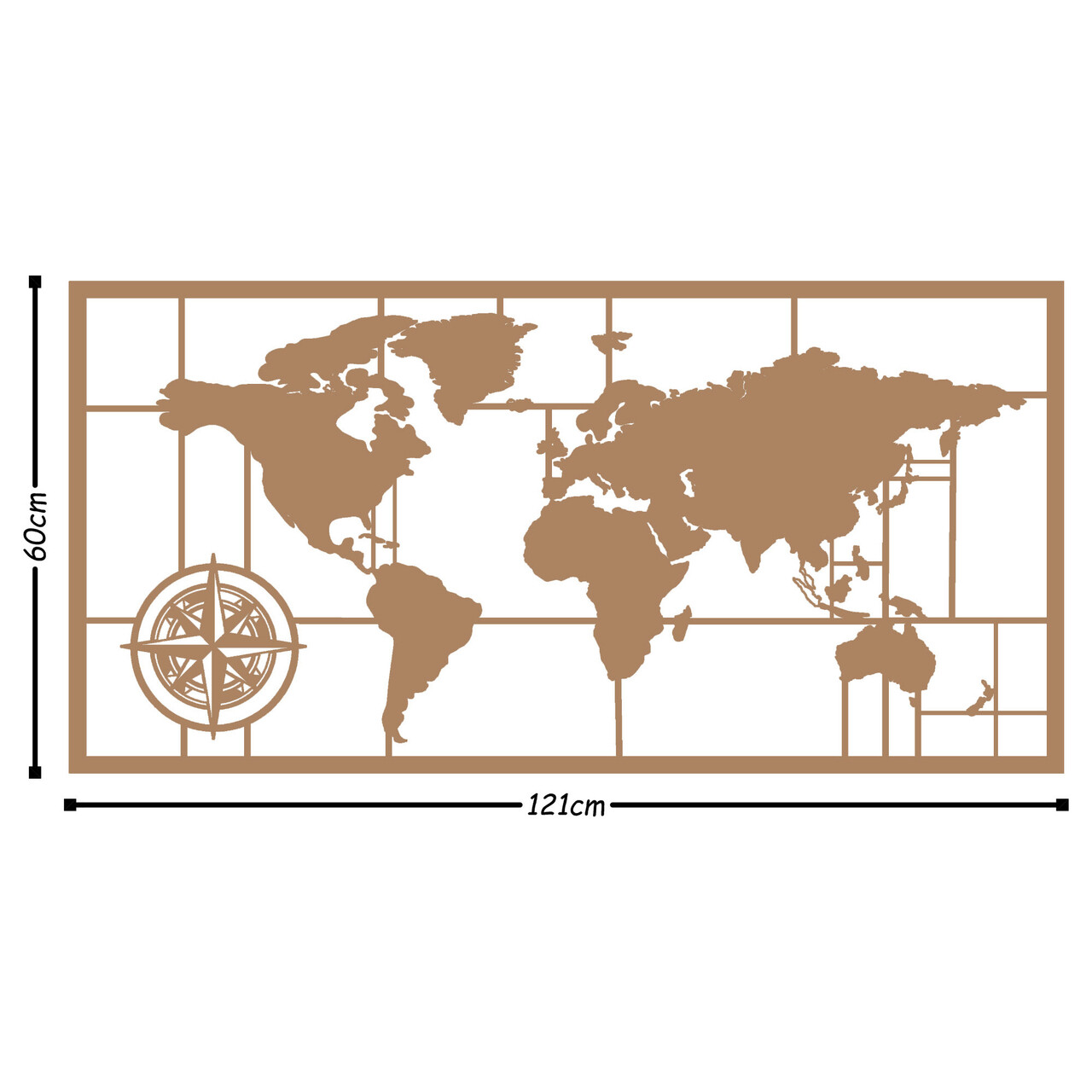 Decoratiune de perete, World Map Metal Decor 7, Metal, Dimensiune: 121 x 60 cm, Cupru