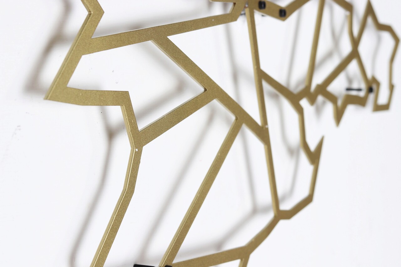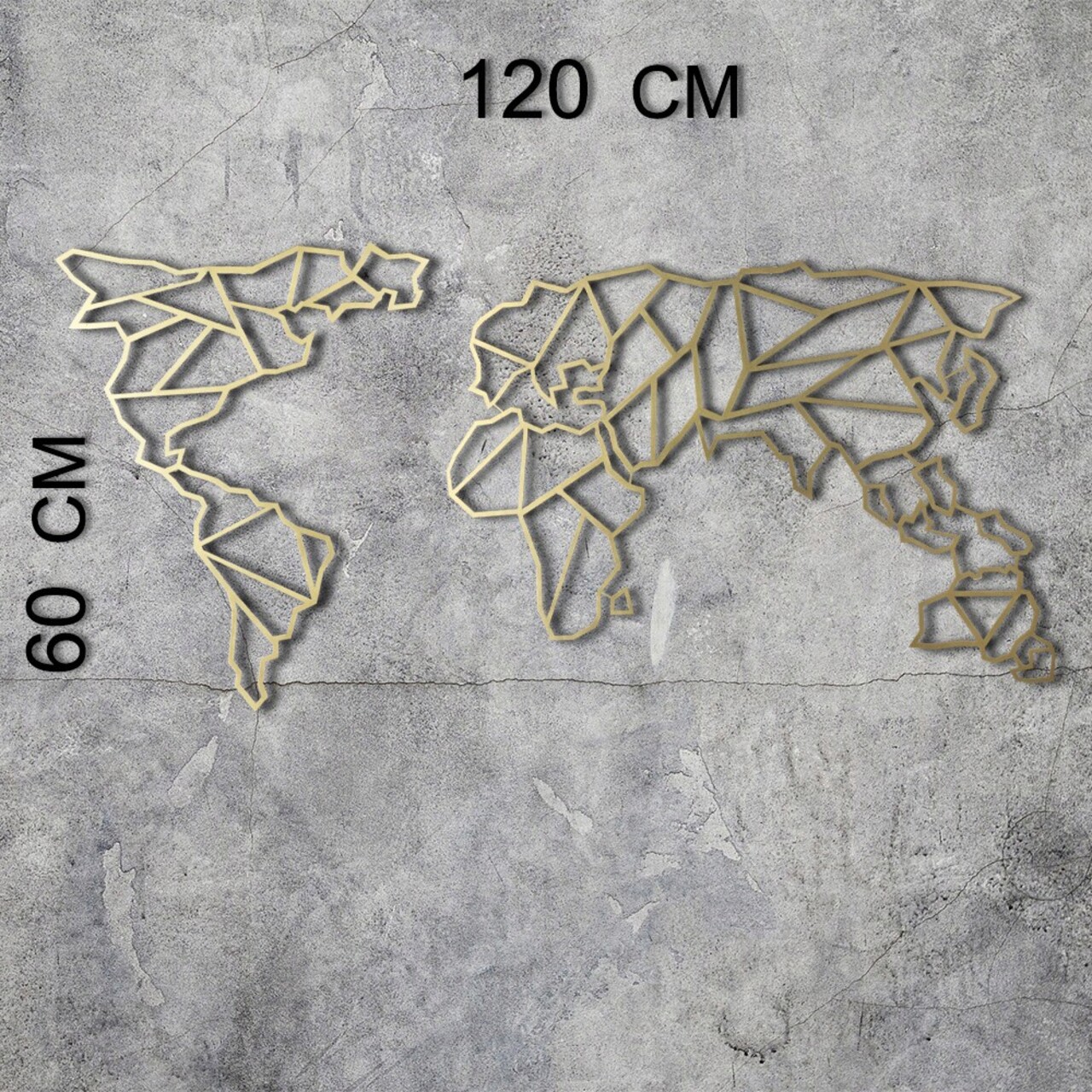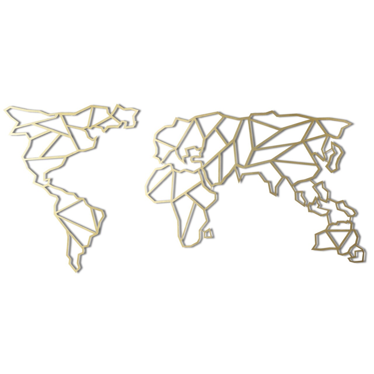 Decoratiune de perete, World Map, Metal, Dimensiune: 60 x 120 cm, Auriu
