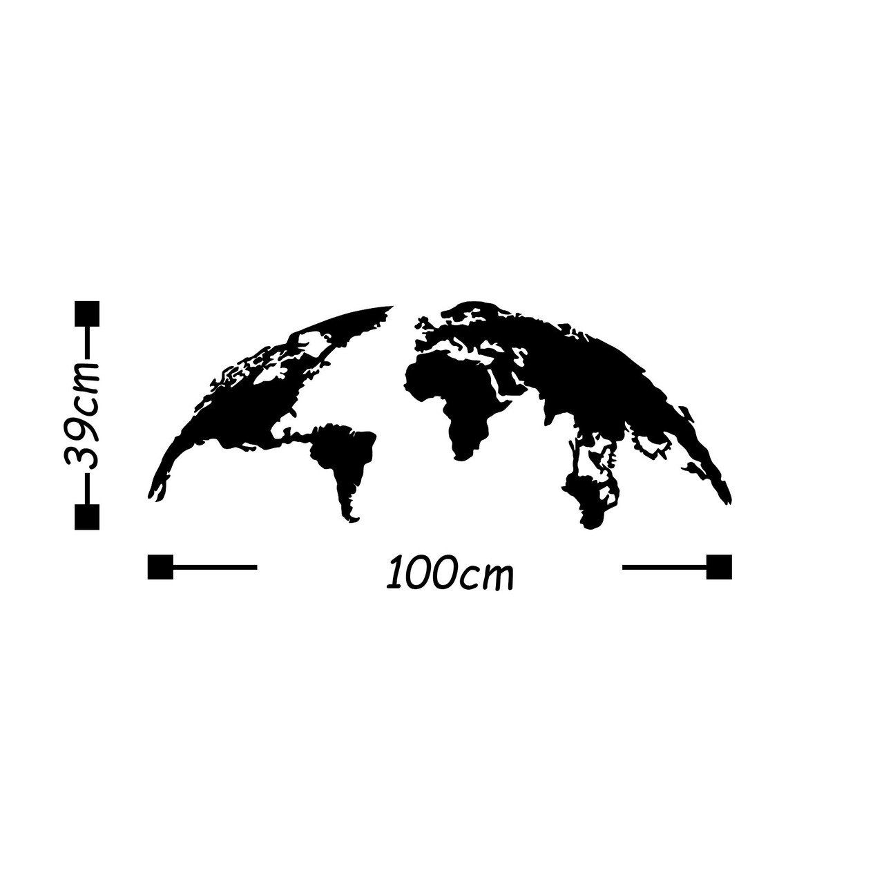Decoratiune de perete, World Map Small, Metal, 100 x 39 cm, Negru
