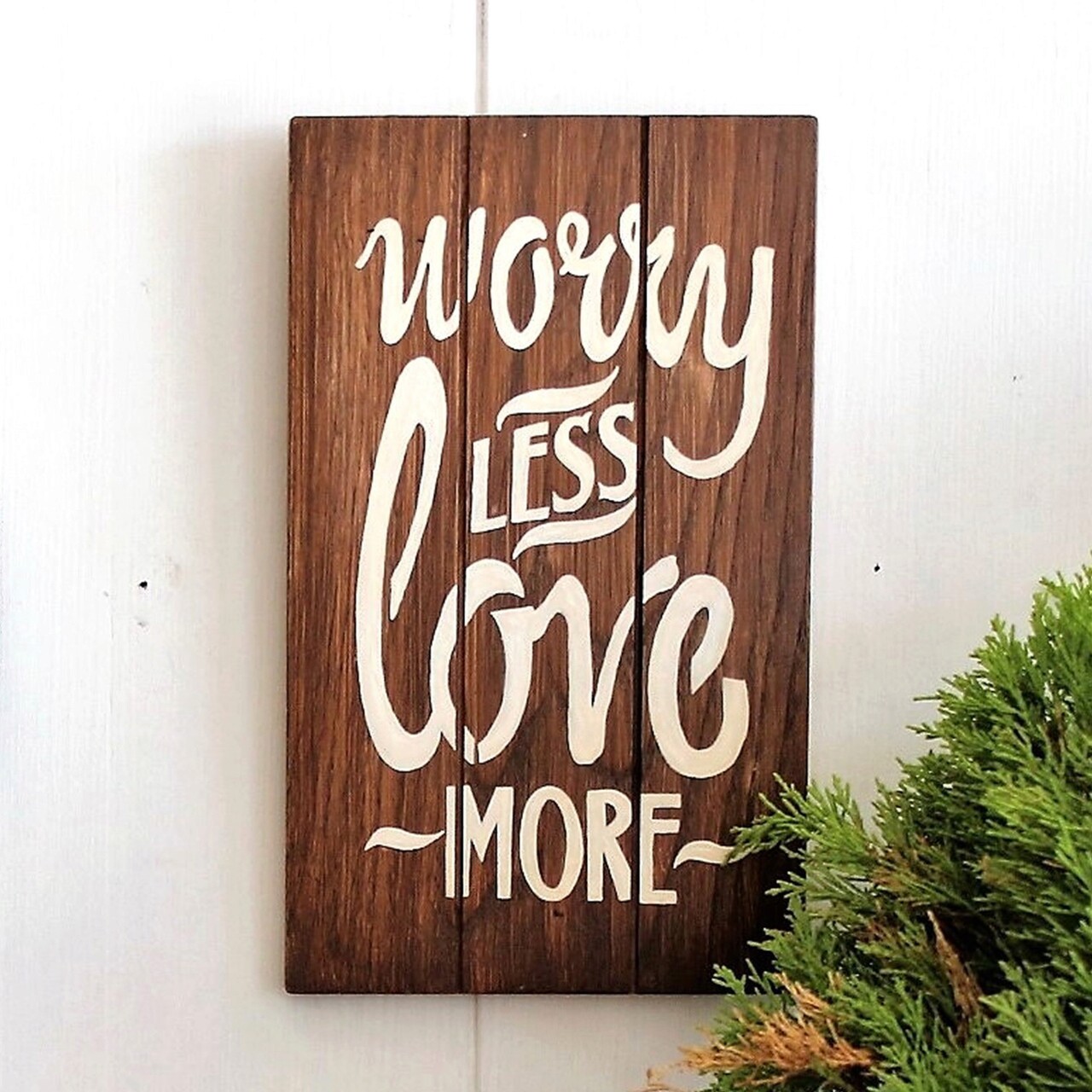 Decoratiune de perete, Worry Less, 18.5x1.8x30 cm, Maro