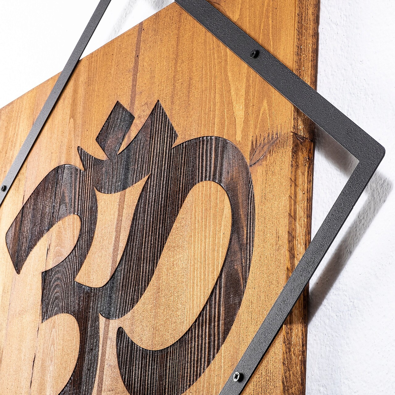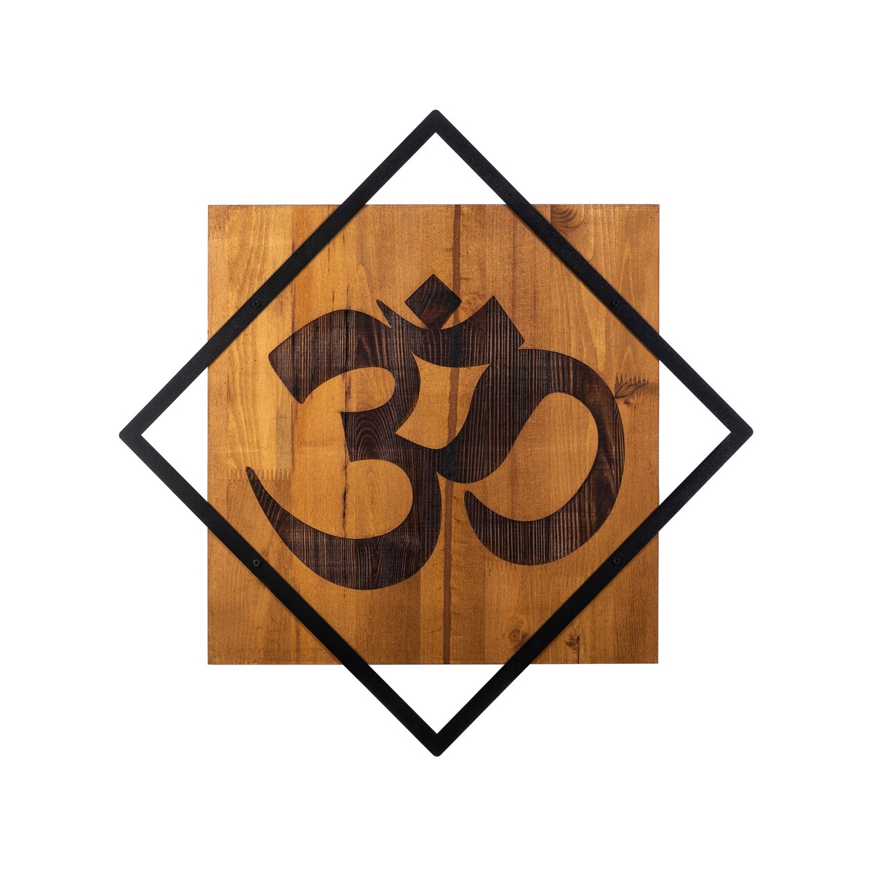 Decoratiune de perete, Yoga, 50% lemn/50% metal, Dimensiune: 54 x 54 cm, Nuc / Negru
