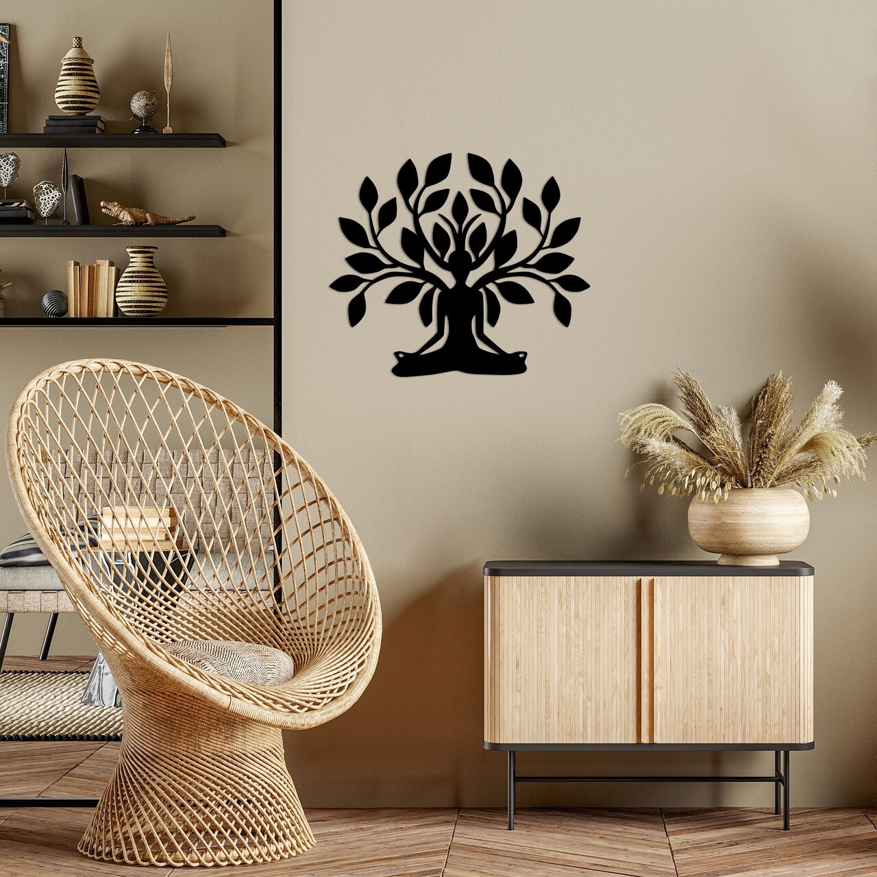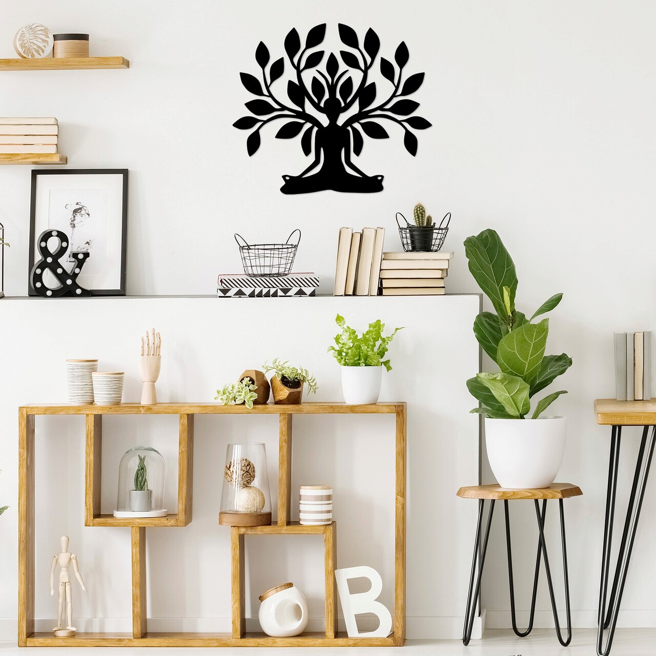 Decoratiune de perete, Yoga, Metal, Dimensiune: 70 x 60 cm, Negru