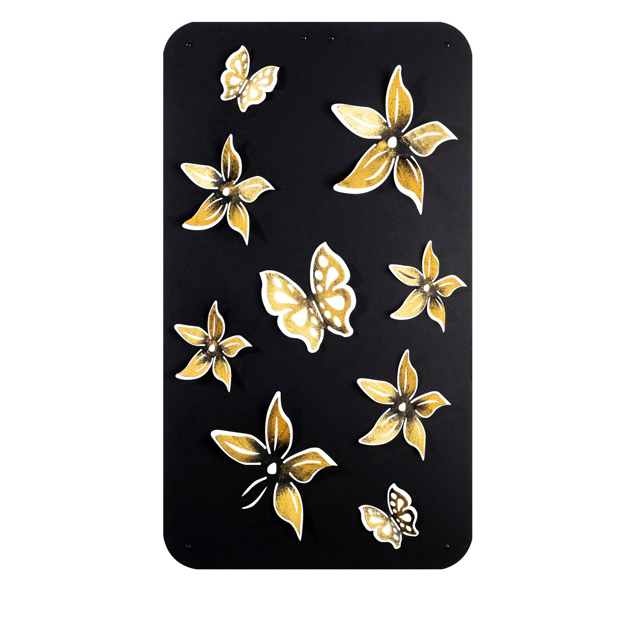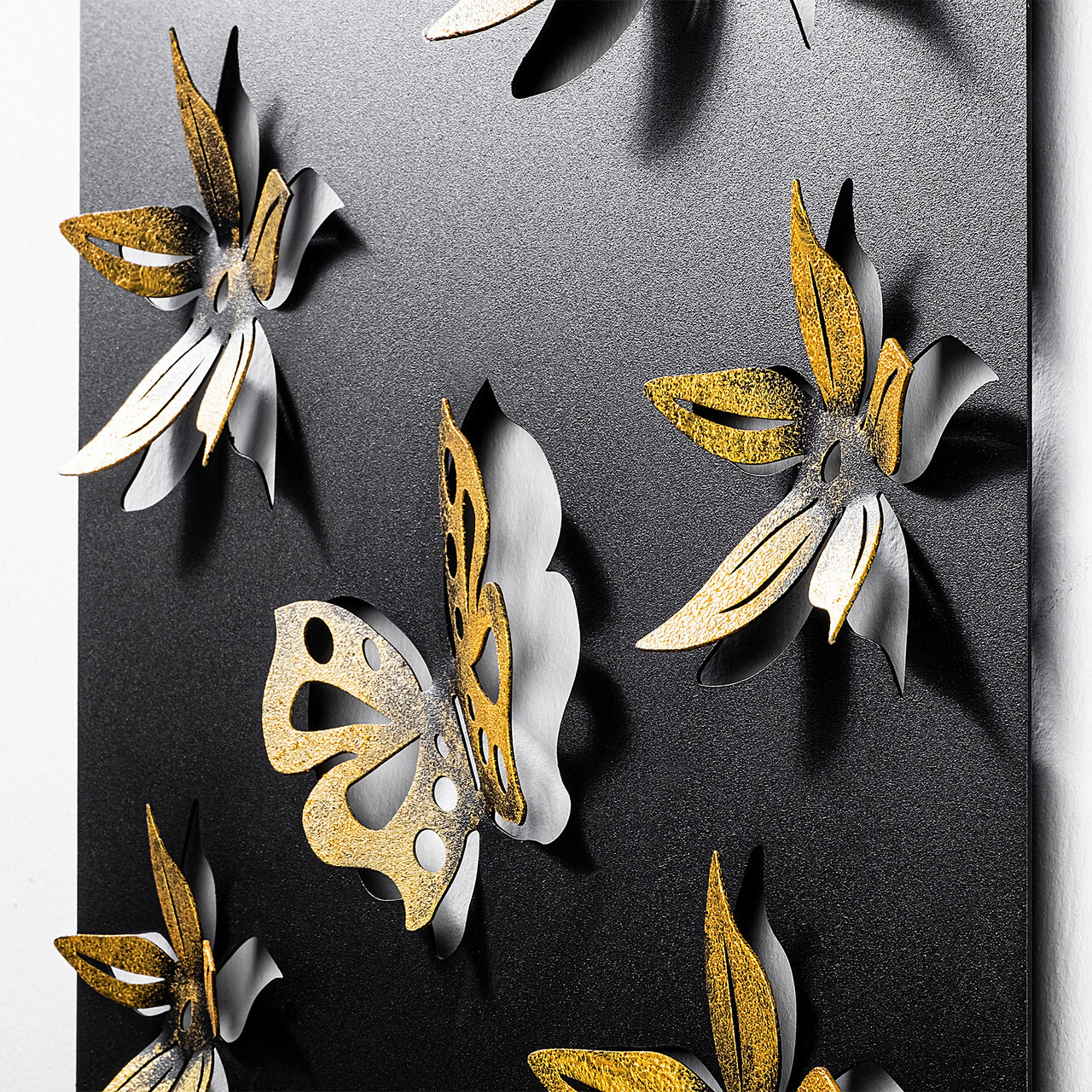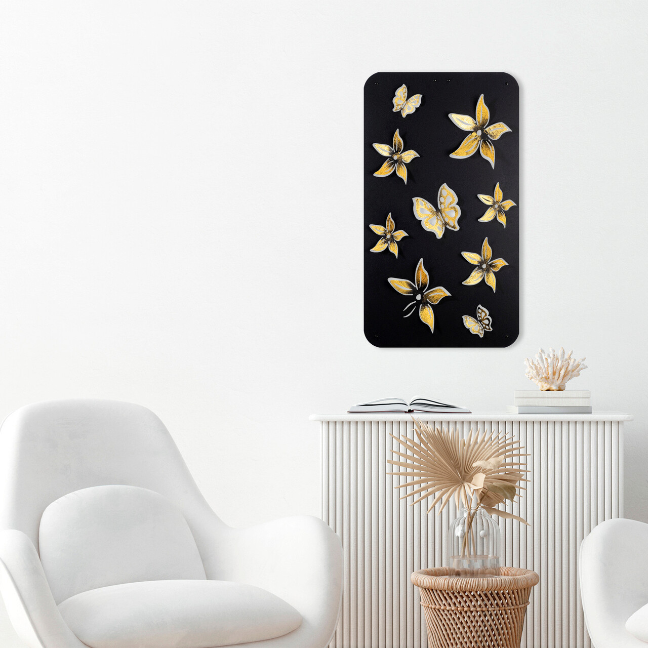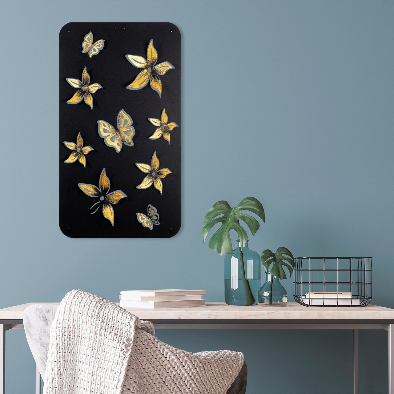 Decoratiune de perete, Yuhuan, Metal, Dimensiune: 40 x 1,5 x 70 cm, Negru