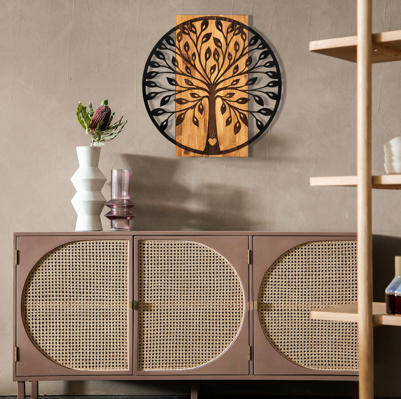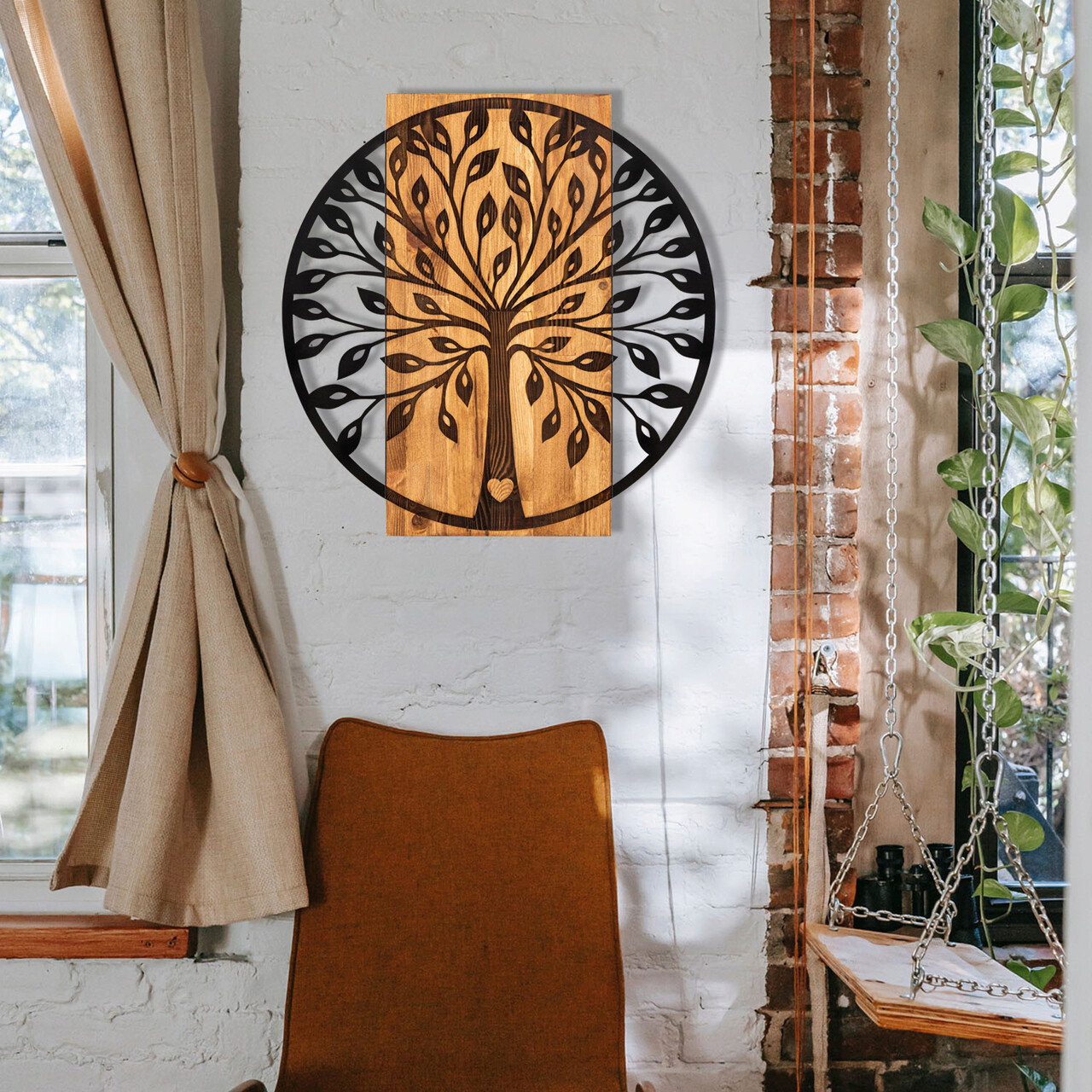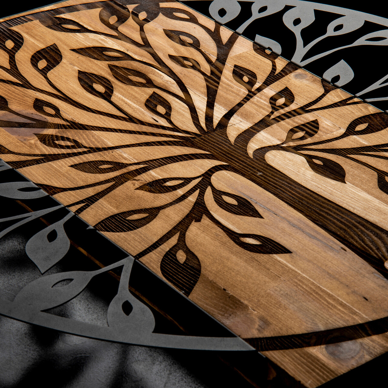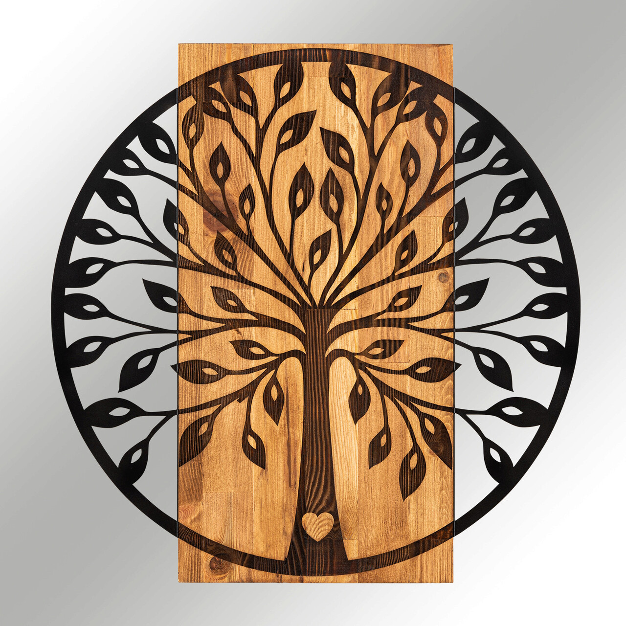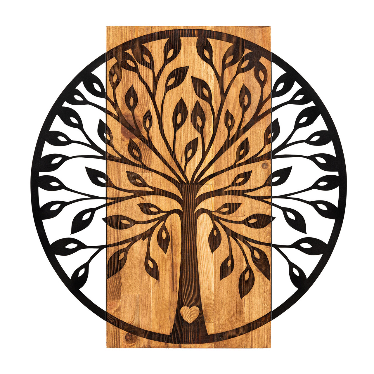 Decoratiune de perete, Zehre, lemn/metal, 56 x 58 cm, negru/maro