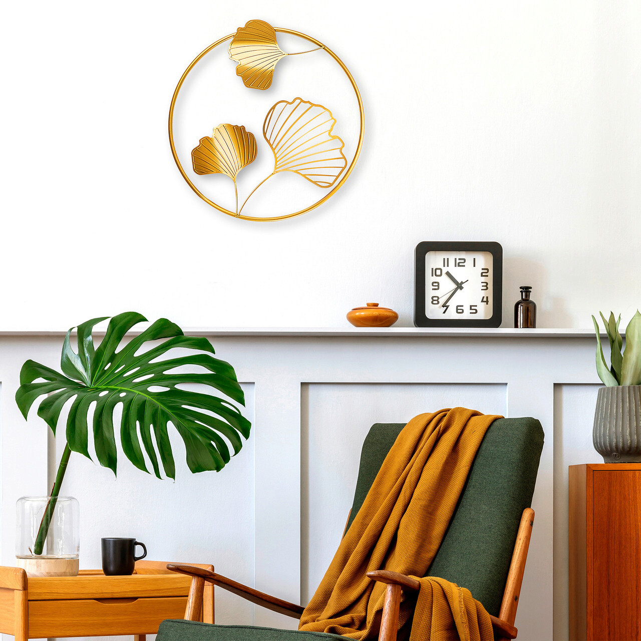 Decoratiune de perete, Zigong, Metal, Dimensiune: 40 x 40 x 5 cm, Auriu