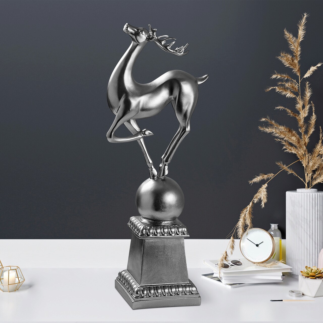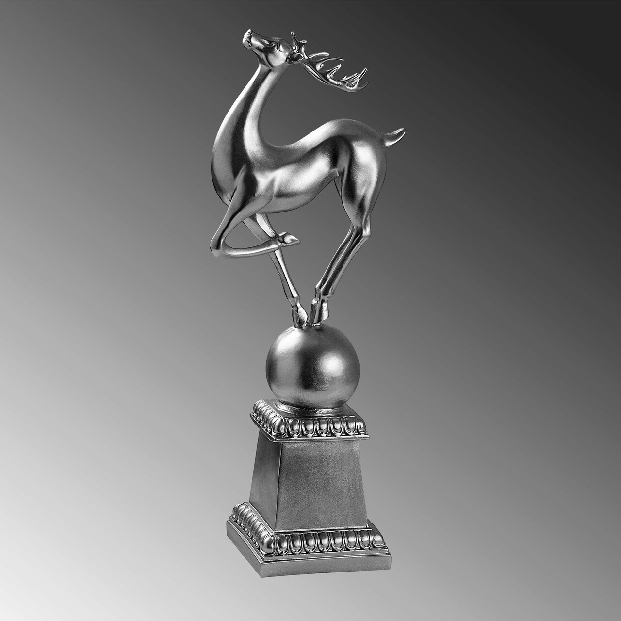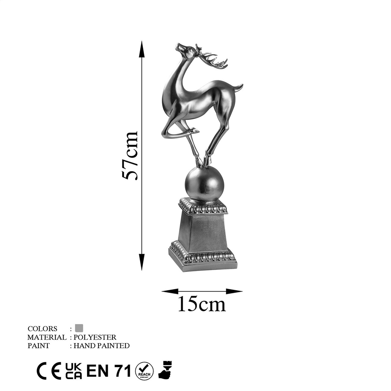Decoratiune, Deer Pose, 15x57x21 cm, Poliester, Argintiu