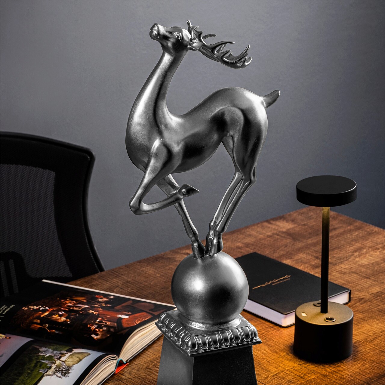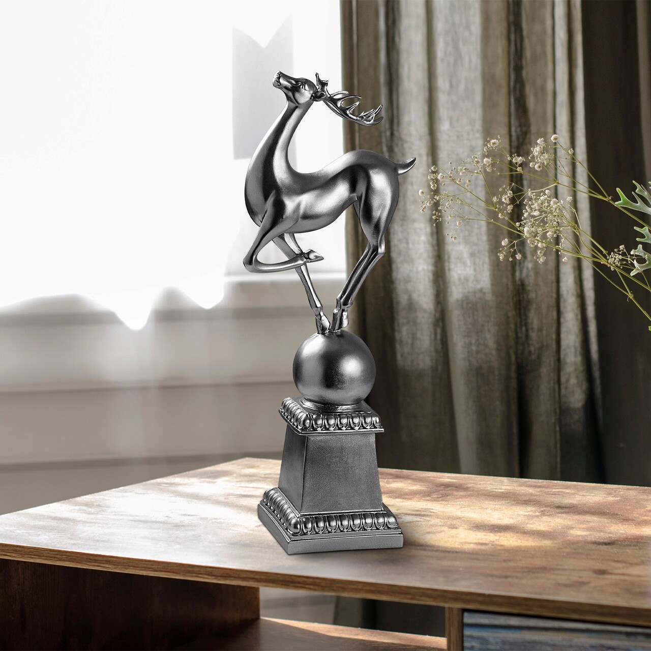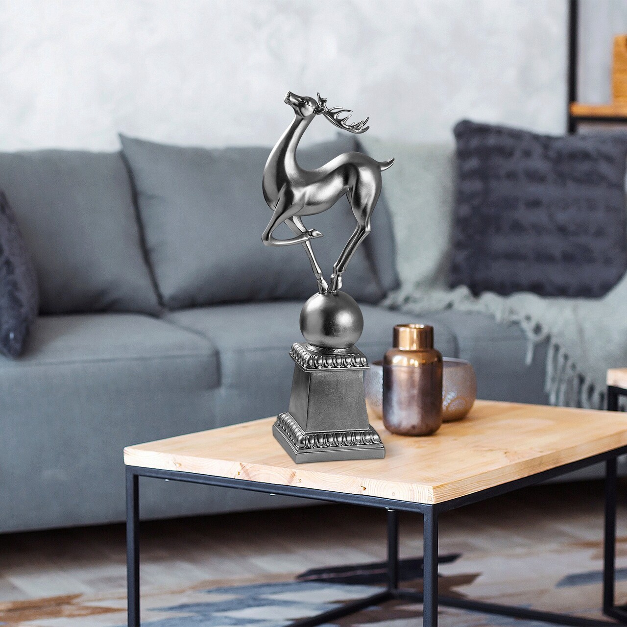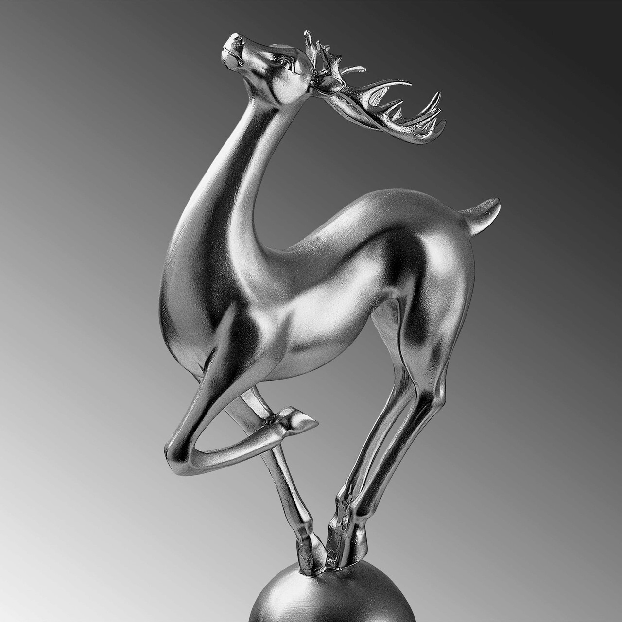 Decoratiune, Deer Pose, 15x57x21 cm, Poliester, Argintiu
