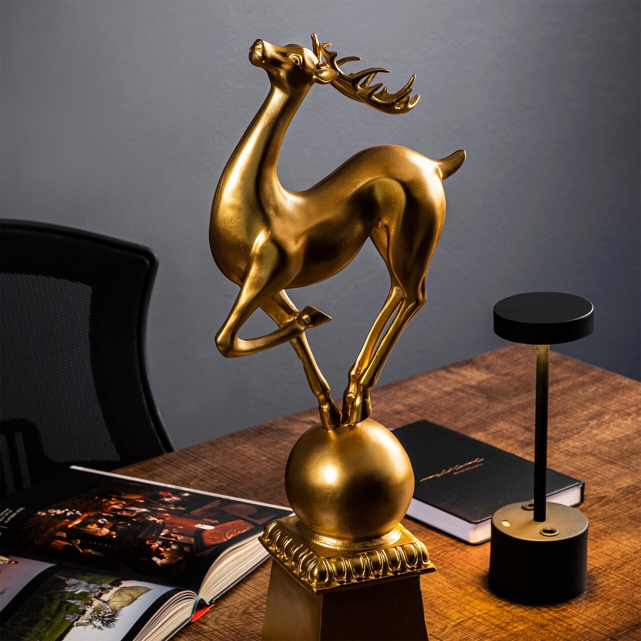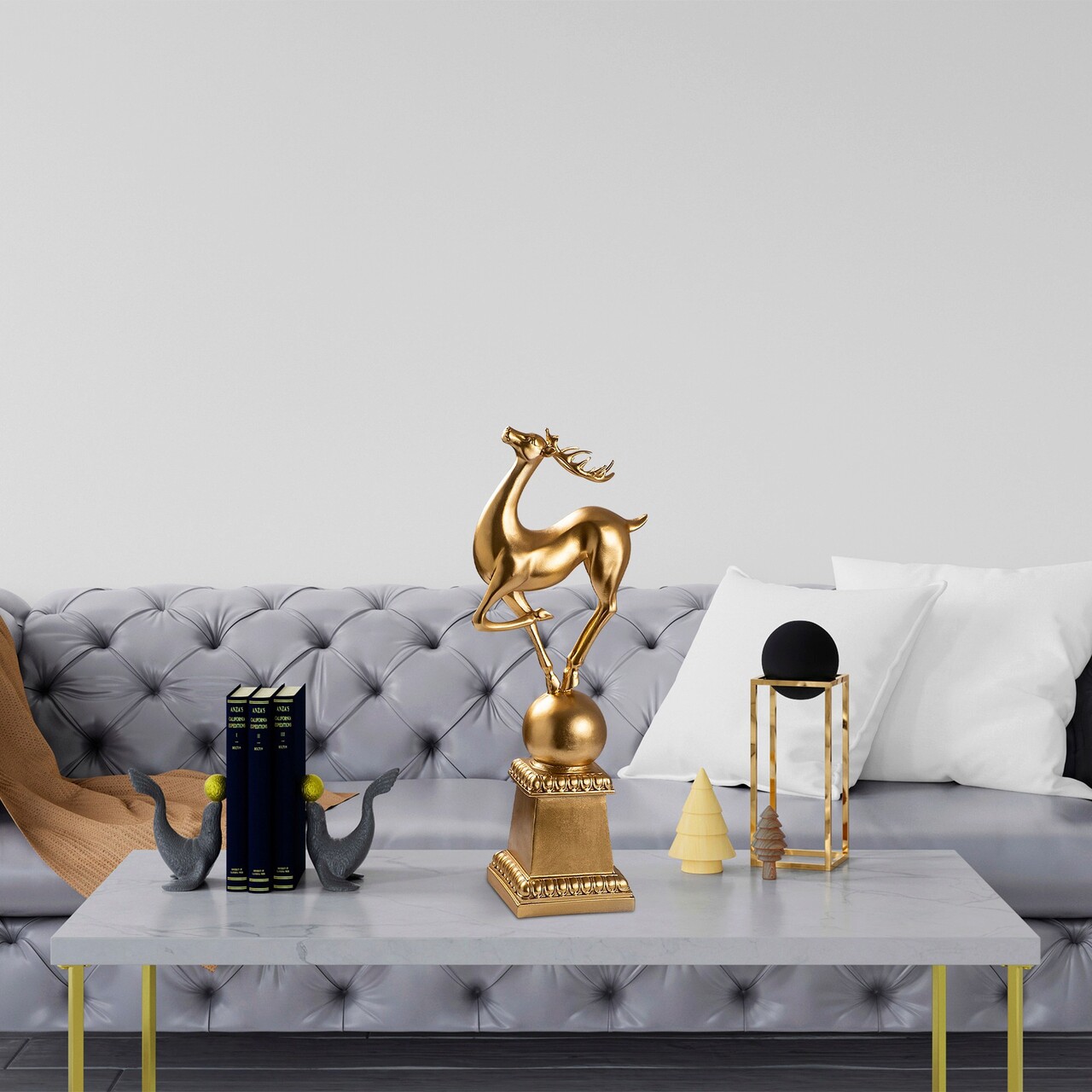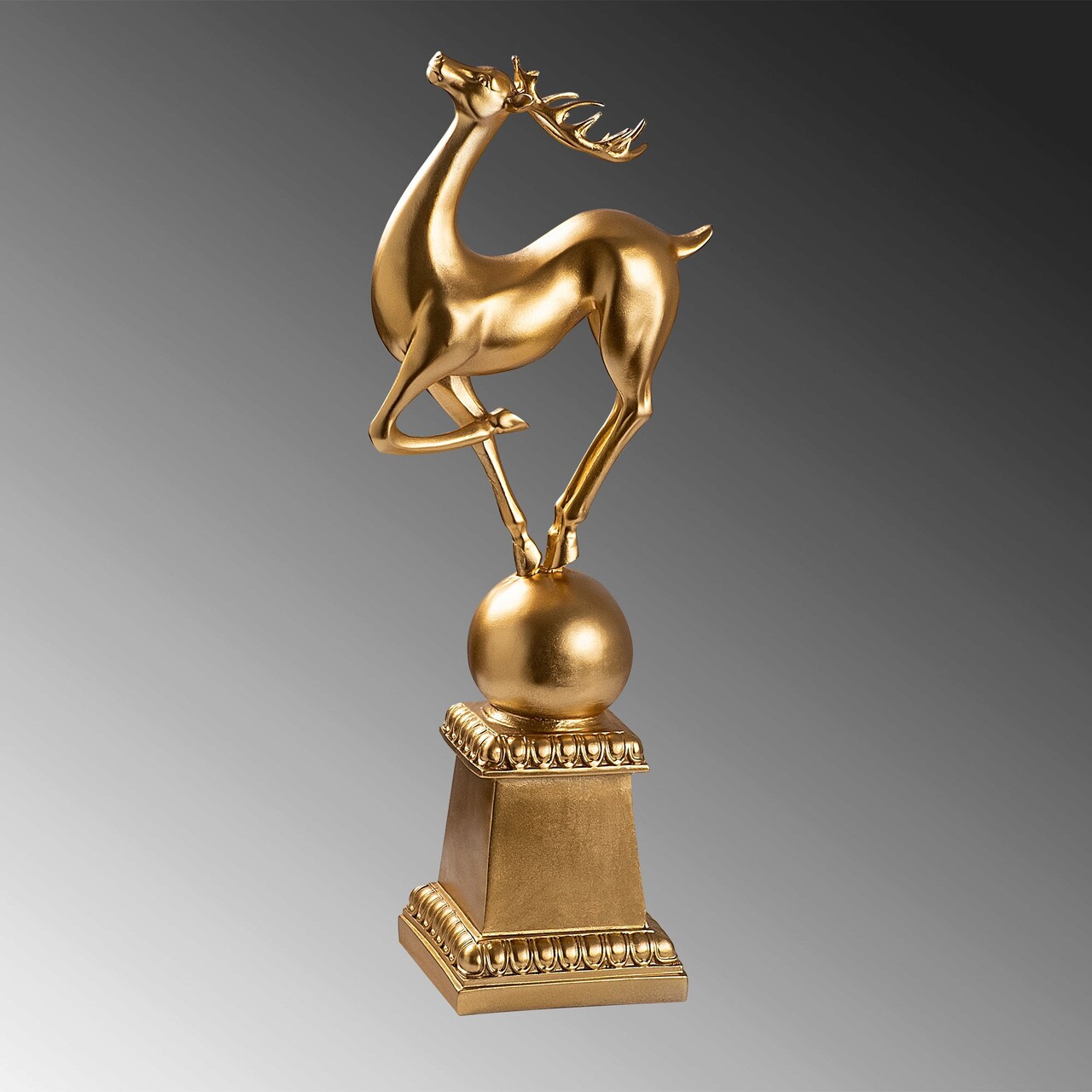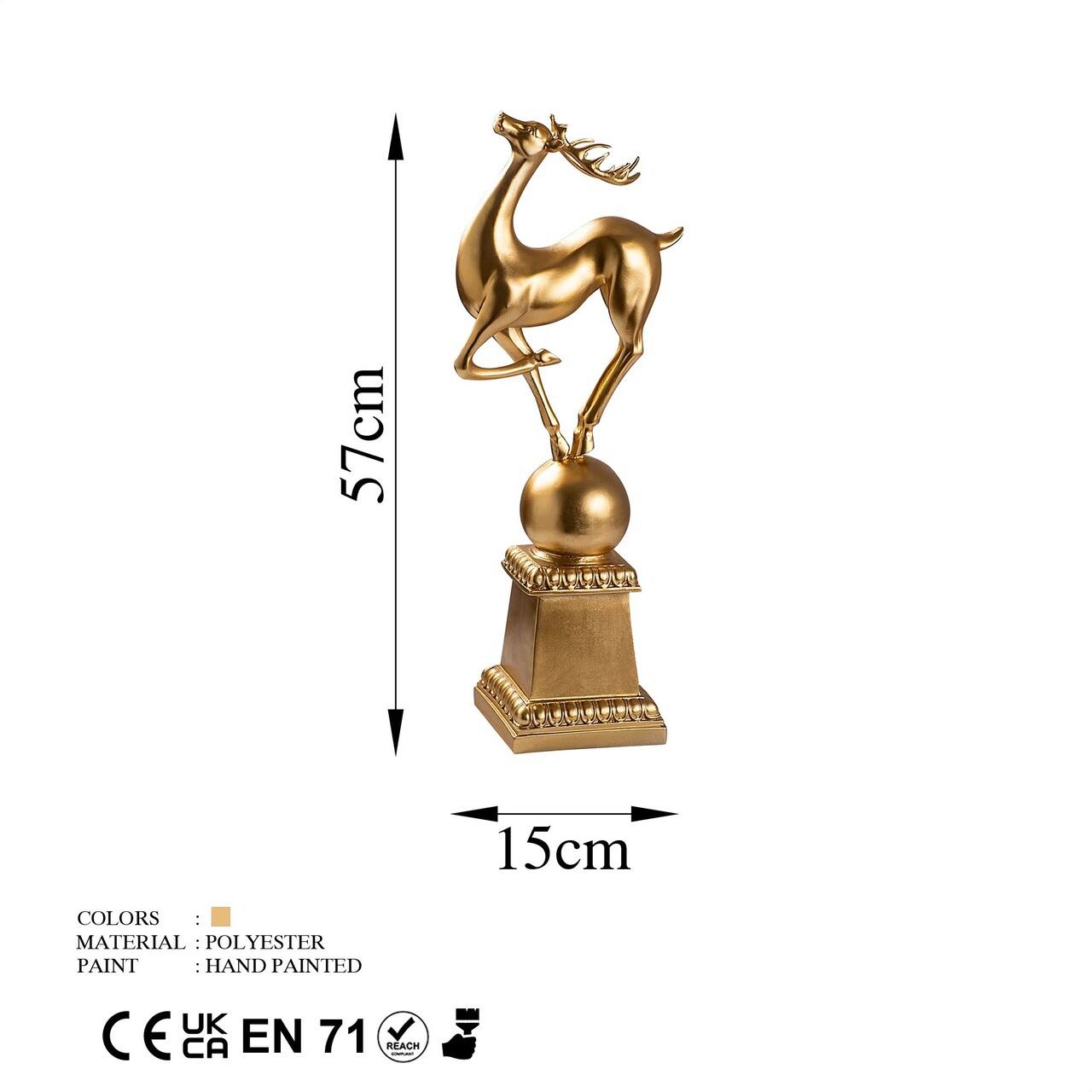 Decoratiune, Deer Pose, 15x57x21 cm, Poliester, Auriu