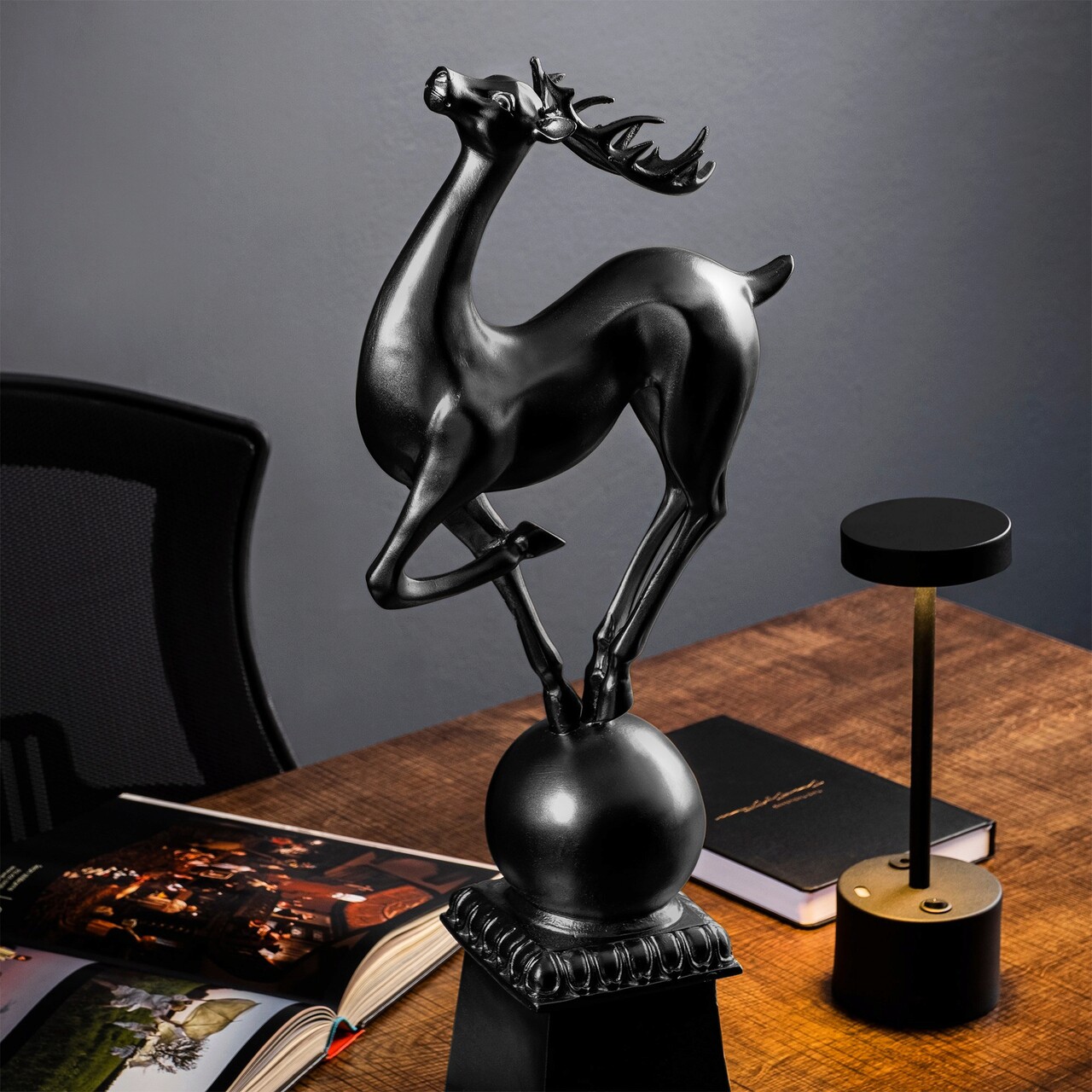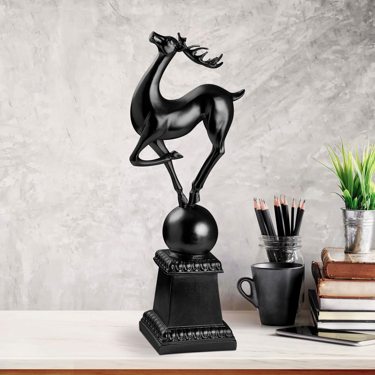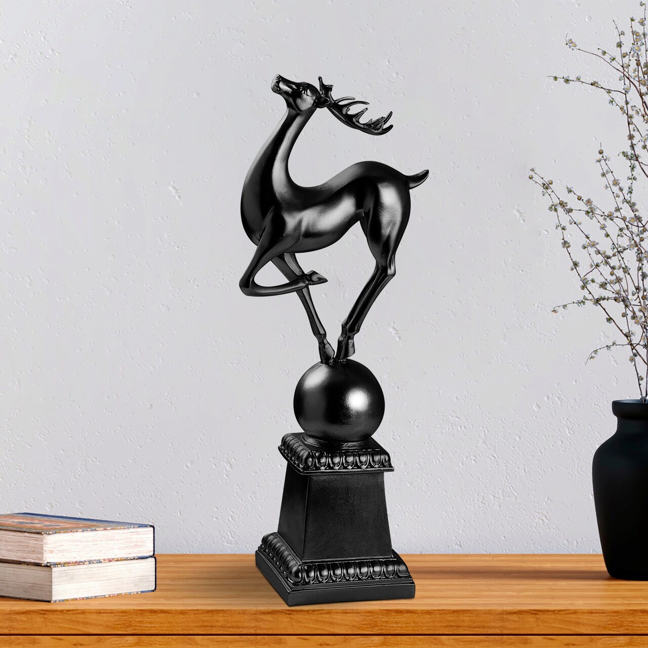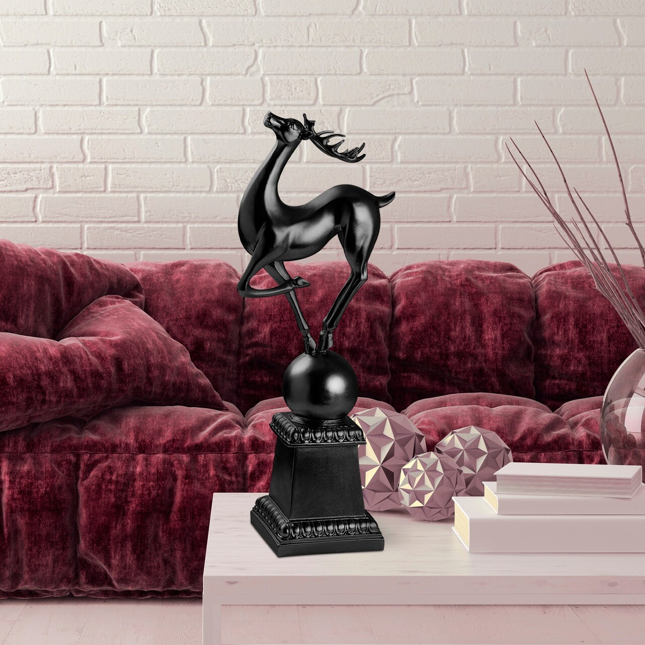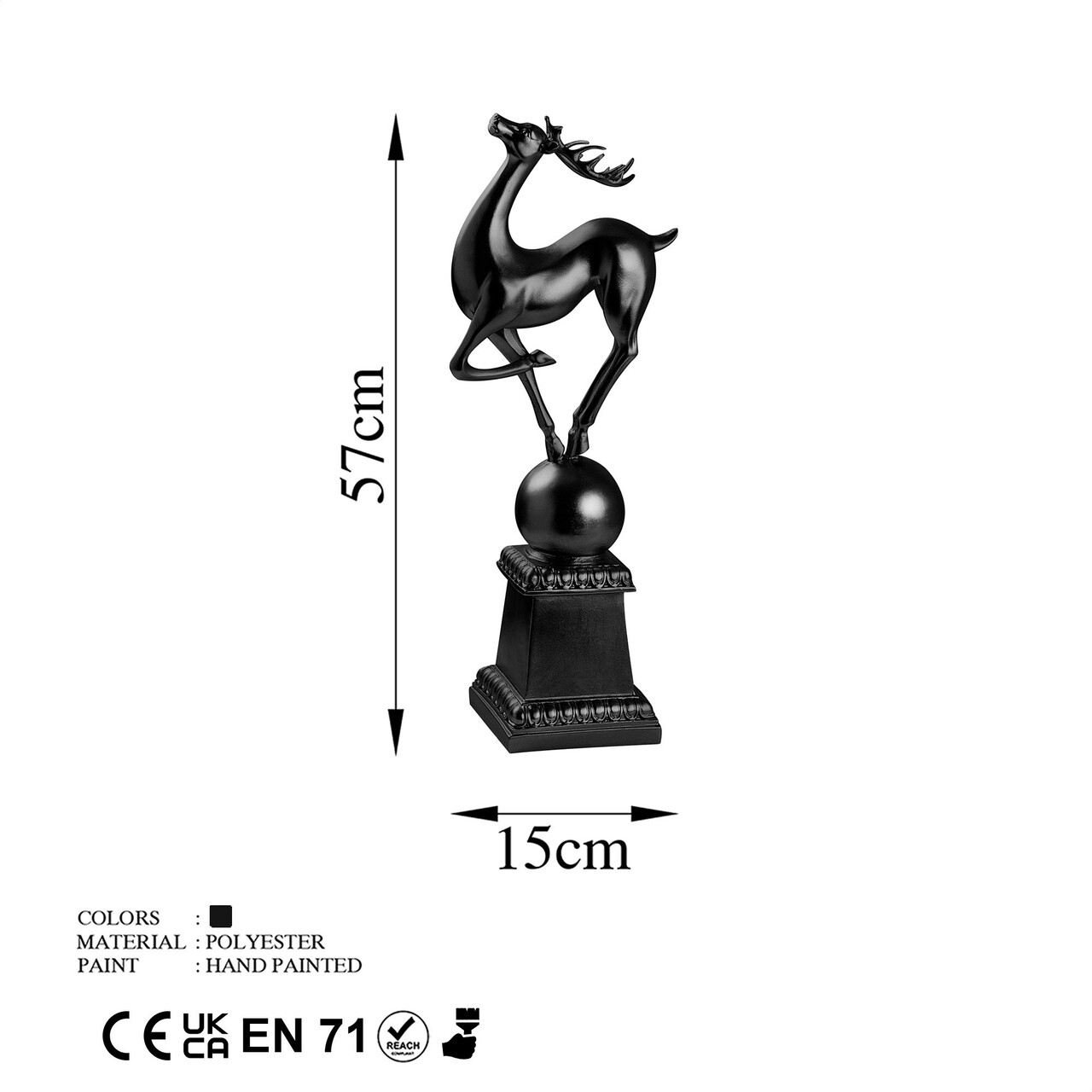 Decoratiune, Deer Pose, 15x57x21 cm, Poliester, Negru
