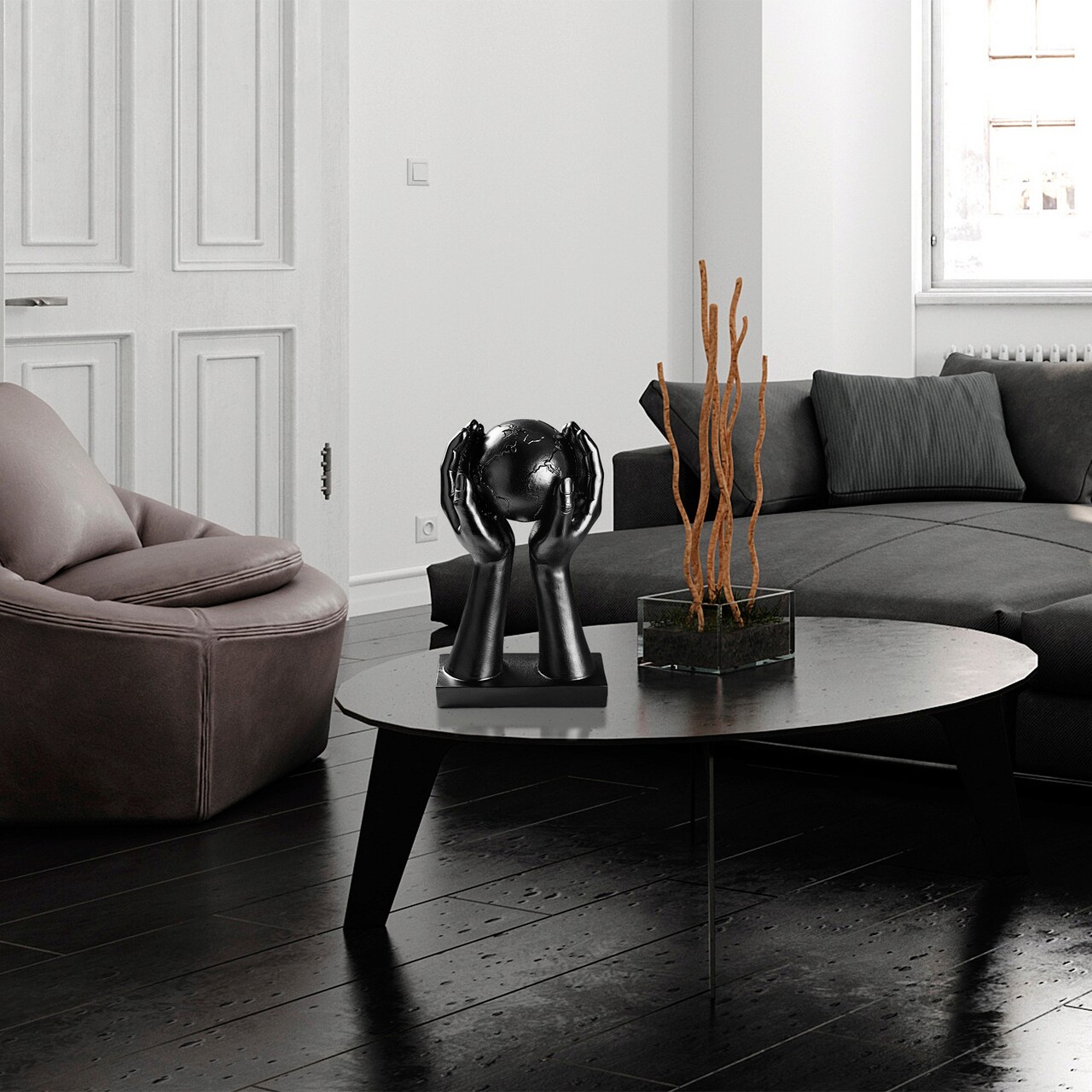 Decoratiune, Global, 18x30x9 cm, Poliester, Negru
