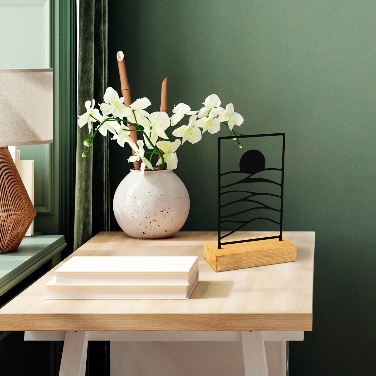 Decoratiune, Horizon, 24x8x17 cm, Metal, Lemn/Negru