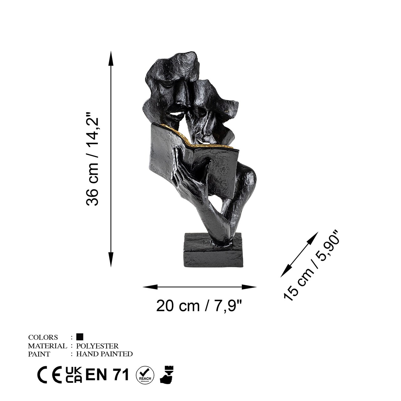 Decoratiune, Lecteur, 20x36x15 cm, Poliester, Negru
