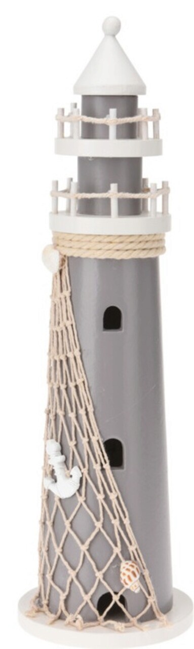 Decoratiune Lighthouse, 11x37 cm, lemn, gri/alb