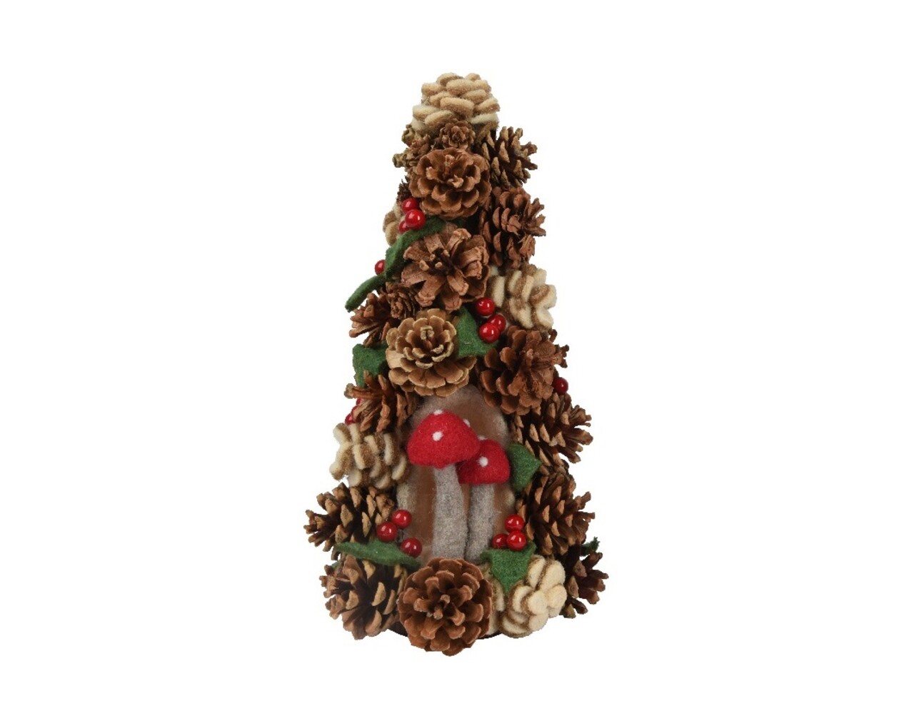 Decoratiune lucrata manual Mushroom, Decoris, 17x35 cm, fetru/conuri de pin