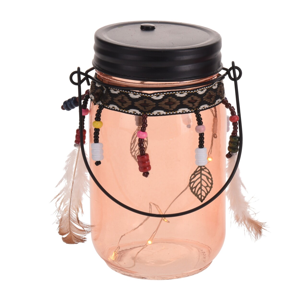 Decoratiune luminoasa Boho, 8x13.5 cm, sticla, coral