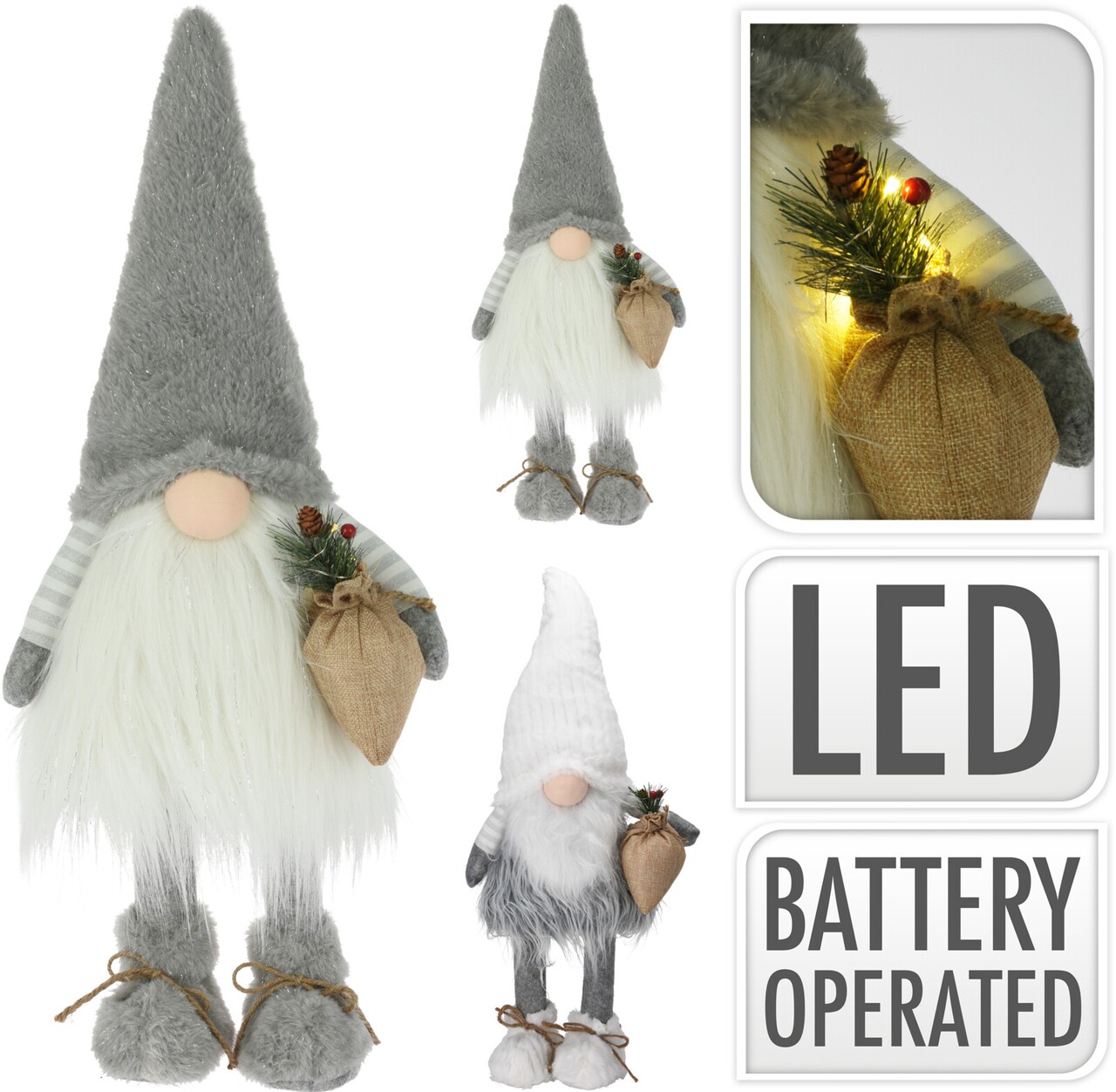 Decoratiune luminoasa Boy Gnome w hat grey, 26x26x65 cm, plus, gri/alb