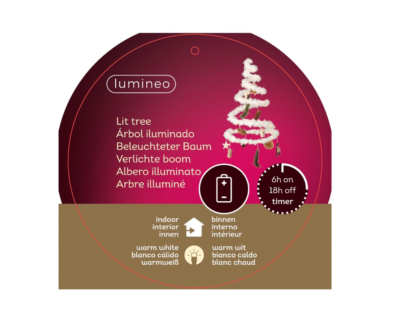Decoratiune luminoasa Brad, Lumineo, 28 cm, alb