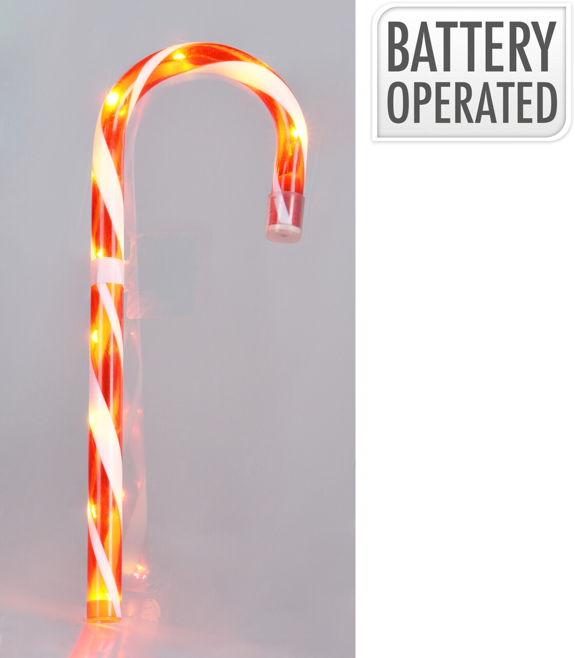 Decoratiune luminoasa cu 11 LED-uri Candy Cane, Excellent Houseware, 13x1.8x45 cm, cu baterii, alb/rosu