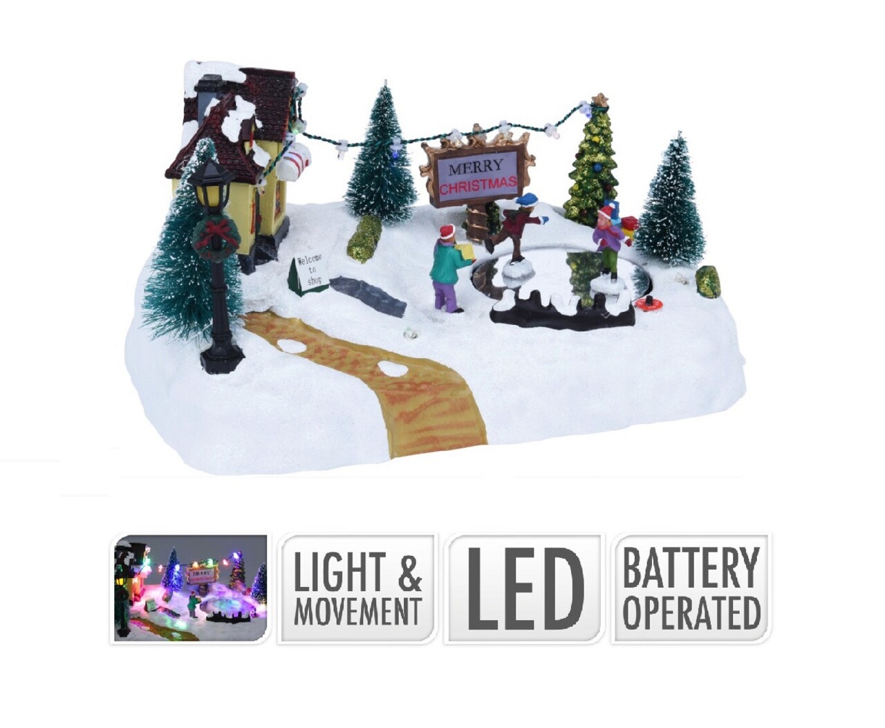 Decoratiune luminoasa cu functie de miscare Children on skates, 28x18.5x17 cm