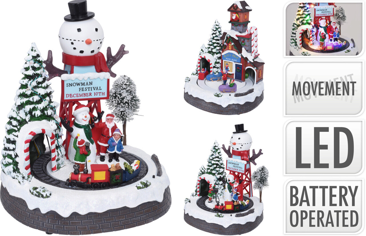 Decoratiune luminoasa cu functie de miscare Snowman festival, 10 LED-uri, 24.5 x 23.5 x 29 cm
