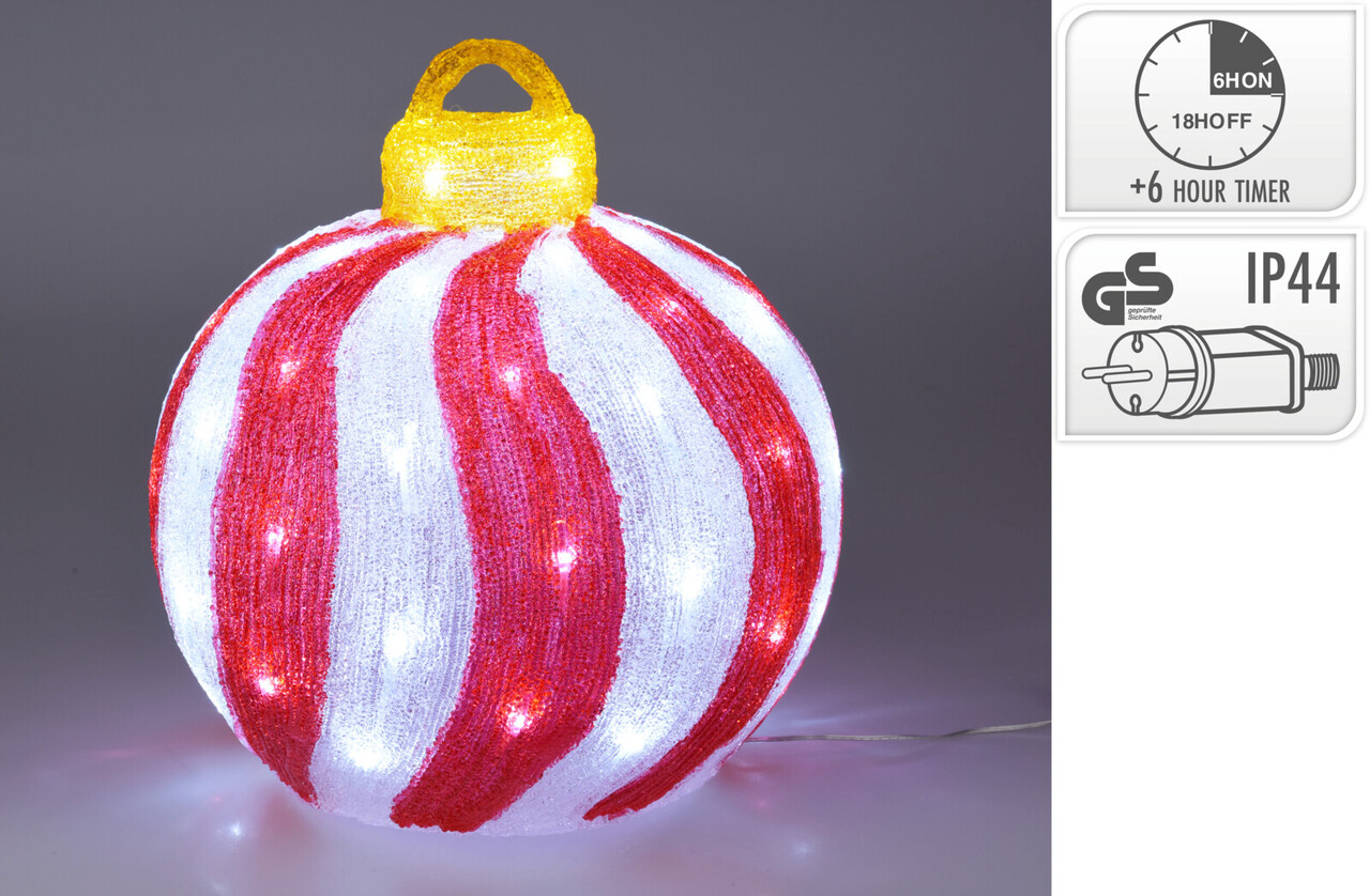 Decoratiune luminoasa de exterior cu 60 LED-uri Ball, Excellent Houseware, transformator IP44, 39x39 cm, rosu/alb