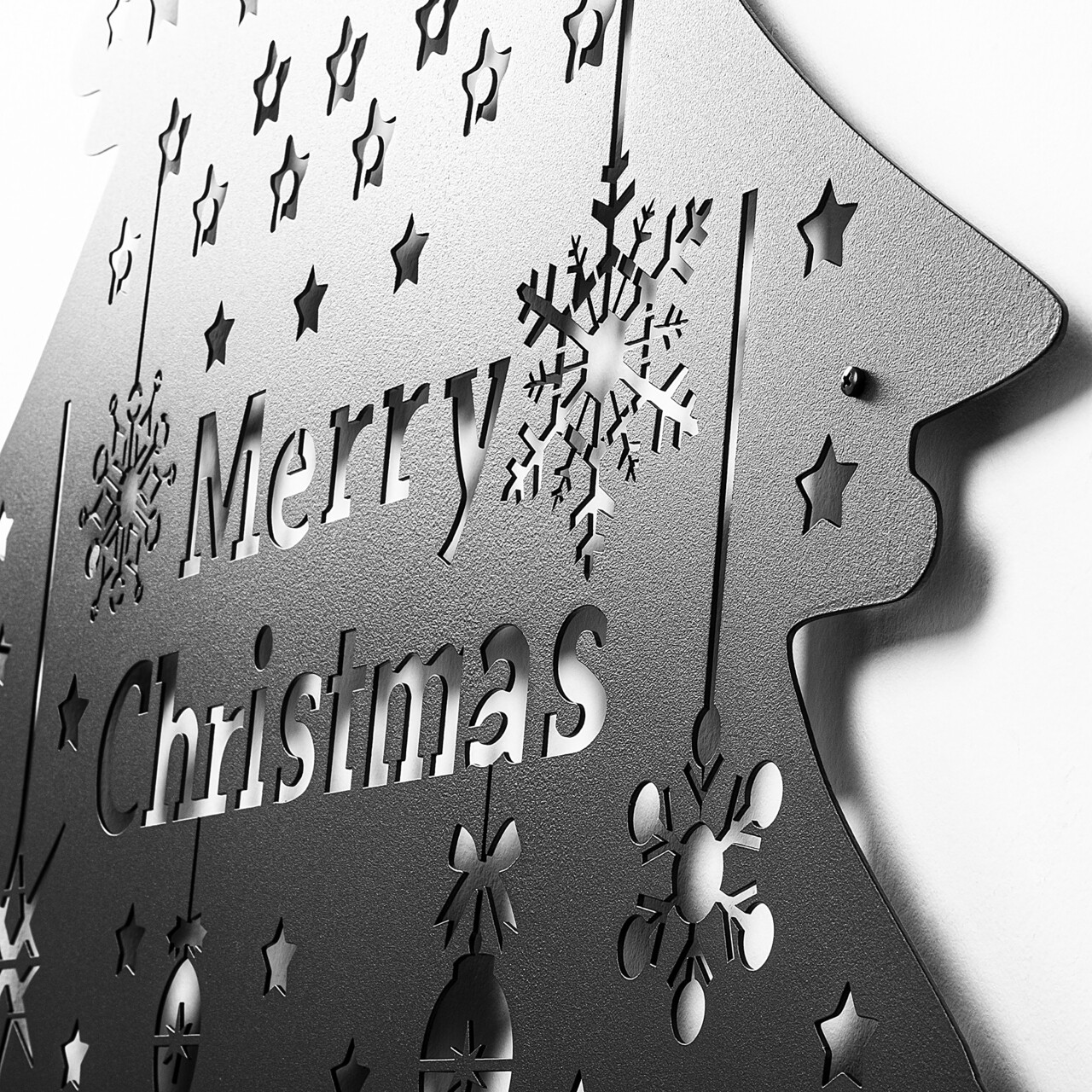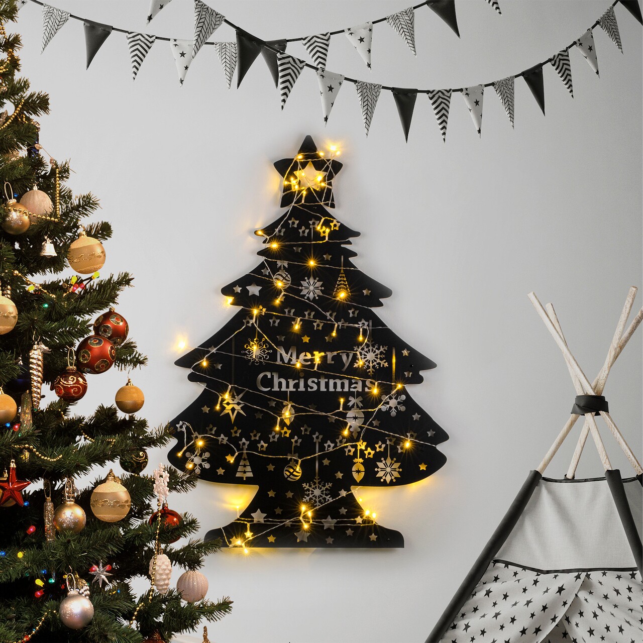Decoratiune luminoasa de perete Christmas Tree, Tanelorn, 70x100 cm, metal, cu baterii, negru