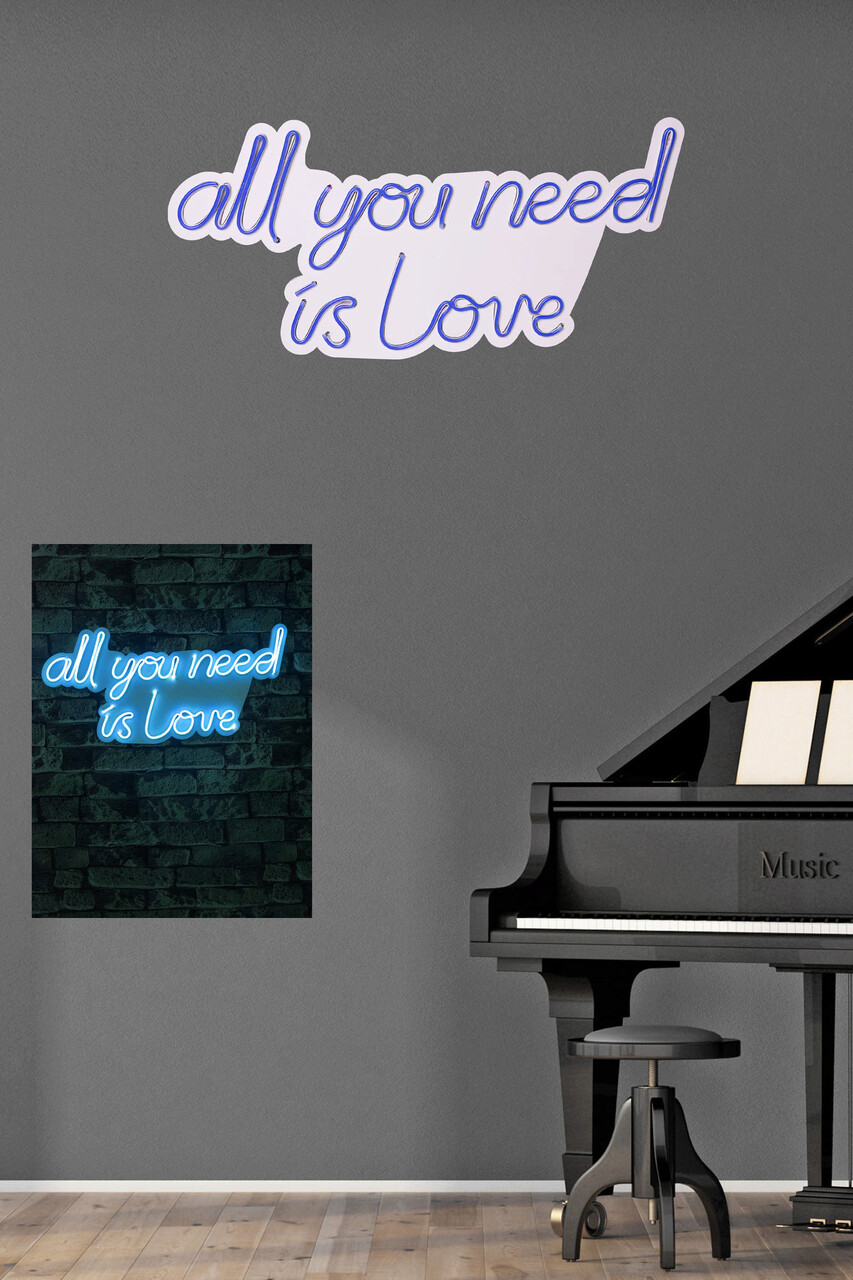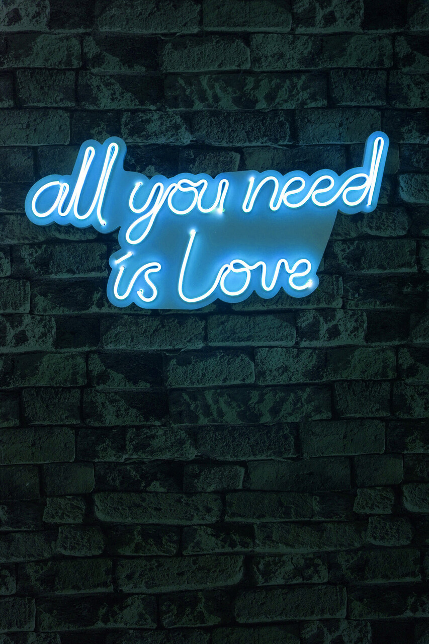 Decoratiune luminoasa LED, All You Need is Love, Benzi flexibile de neon, DC 12 V, Albastru