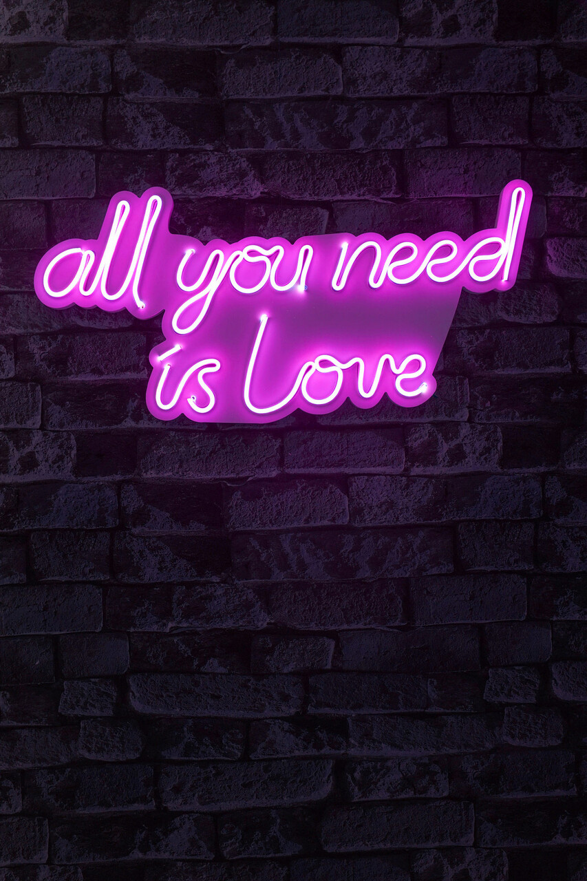 Decoratiune luminoasa LED, All You Need is Love, Benzi flexibile de neon, DC 12 V, Roz