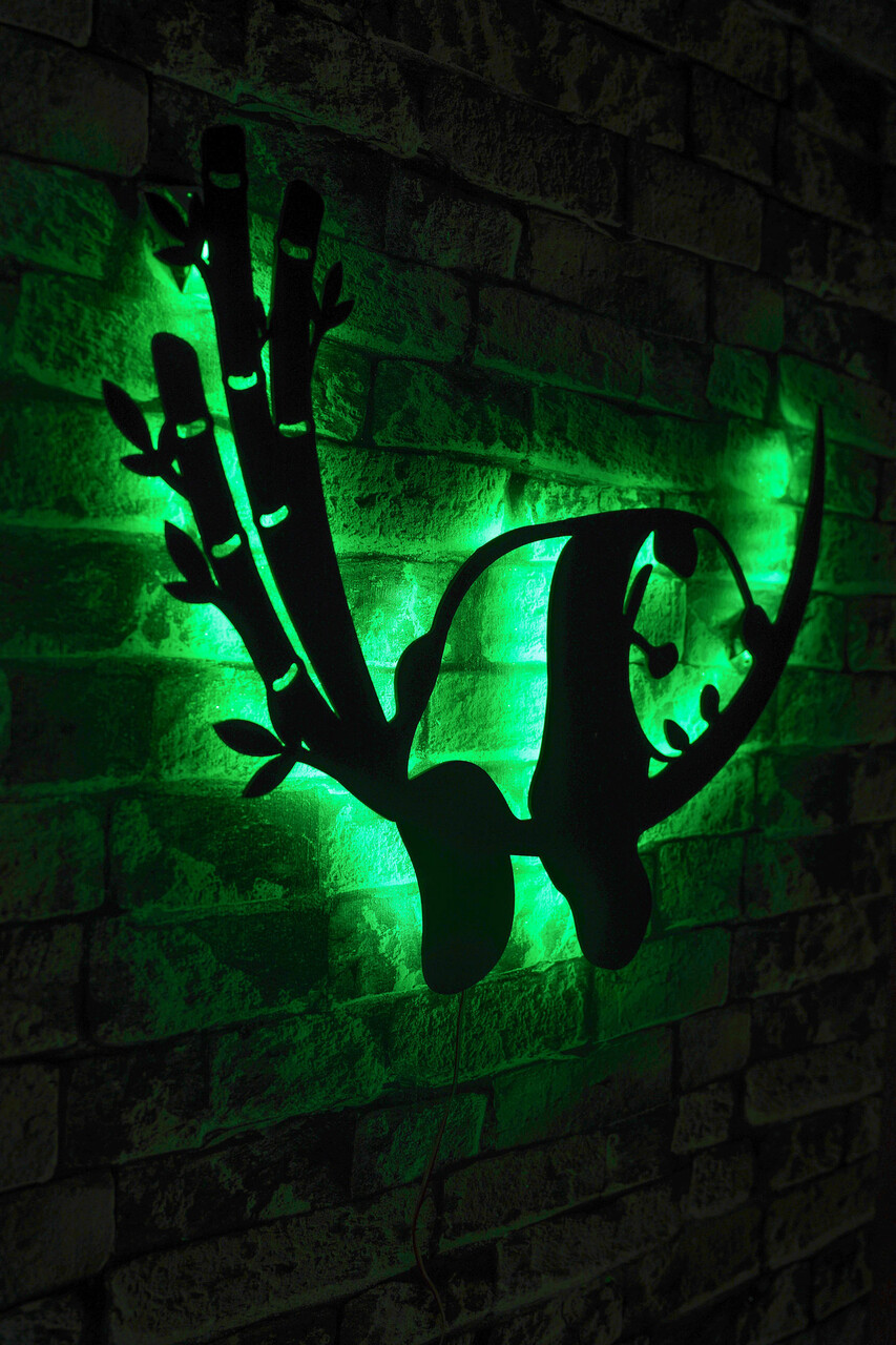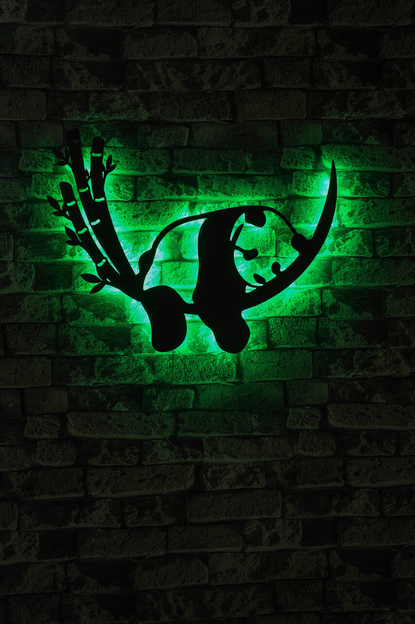 Decoratiune luminoasa LED, Baby Panda, MDF, 60 LED-uri, Verde