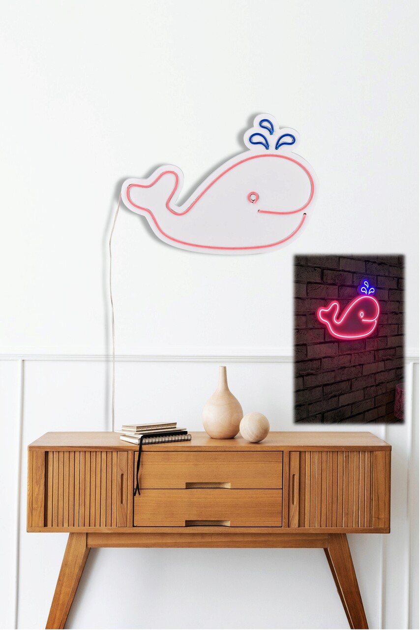 Decoratiune luminoasa LED, Baby Whale, Benzi flexibile de neon, DC 12 V, Roz / Albastru