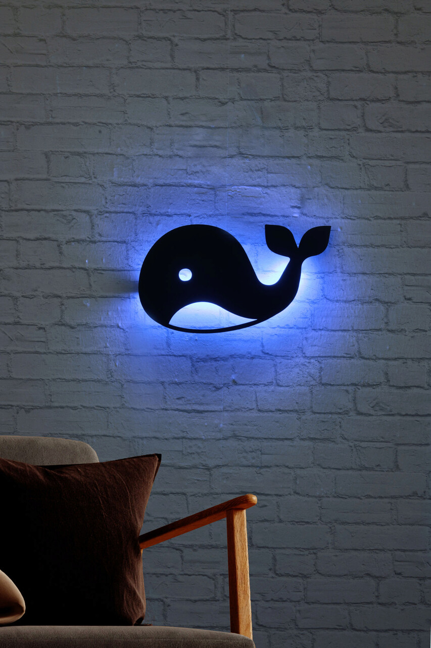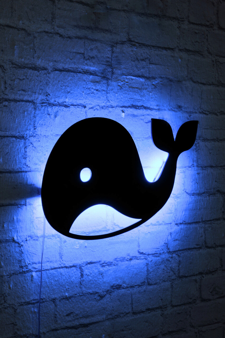 Decoratiune luminoasa LED, Baby Whale, MDF, 60 LED-uri, Albastru