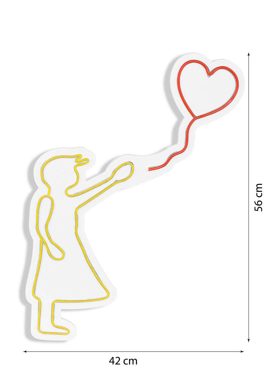 Decoratiune luminoasa LED, Balloon Girl, Benzi flexibile de neon, DC 12 V, Galben rosu