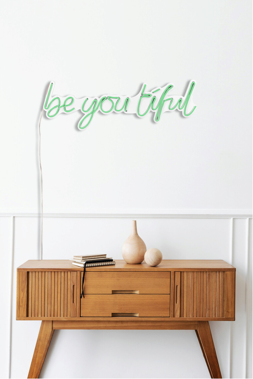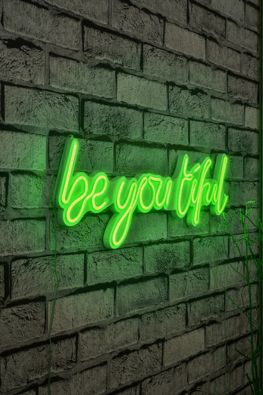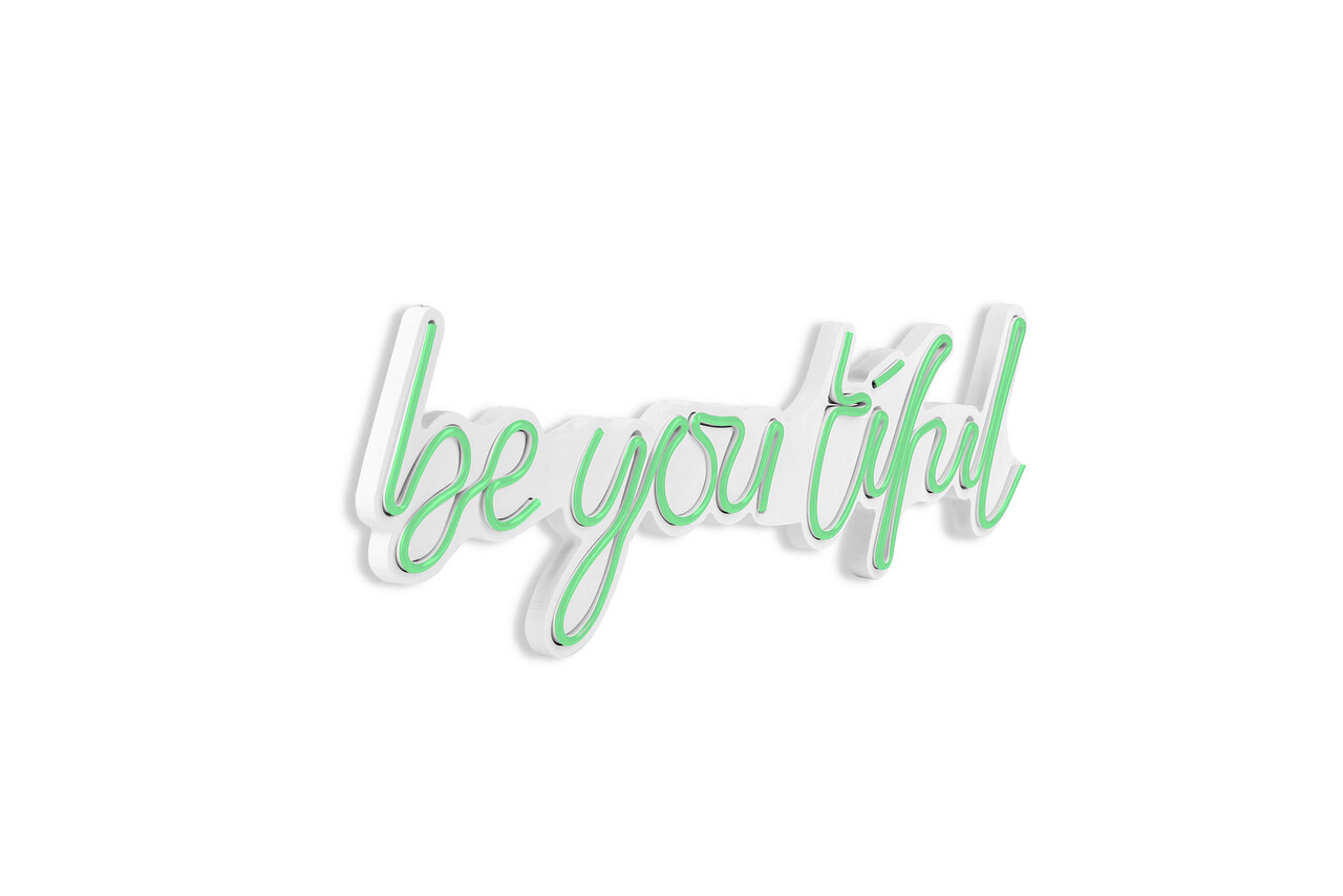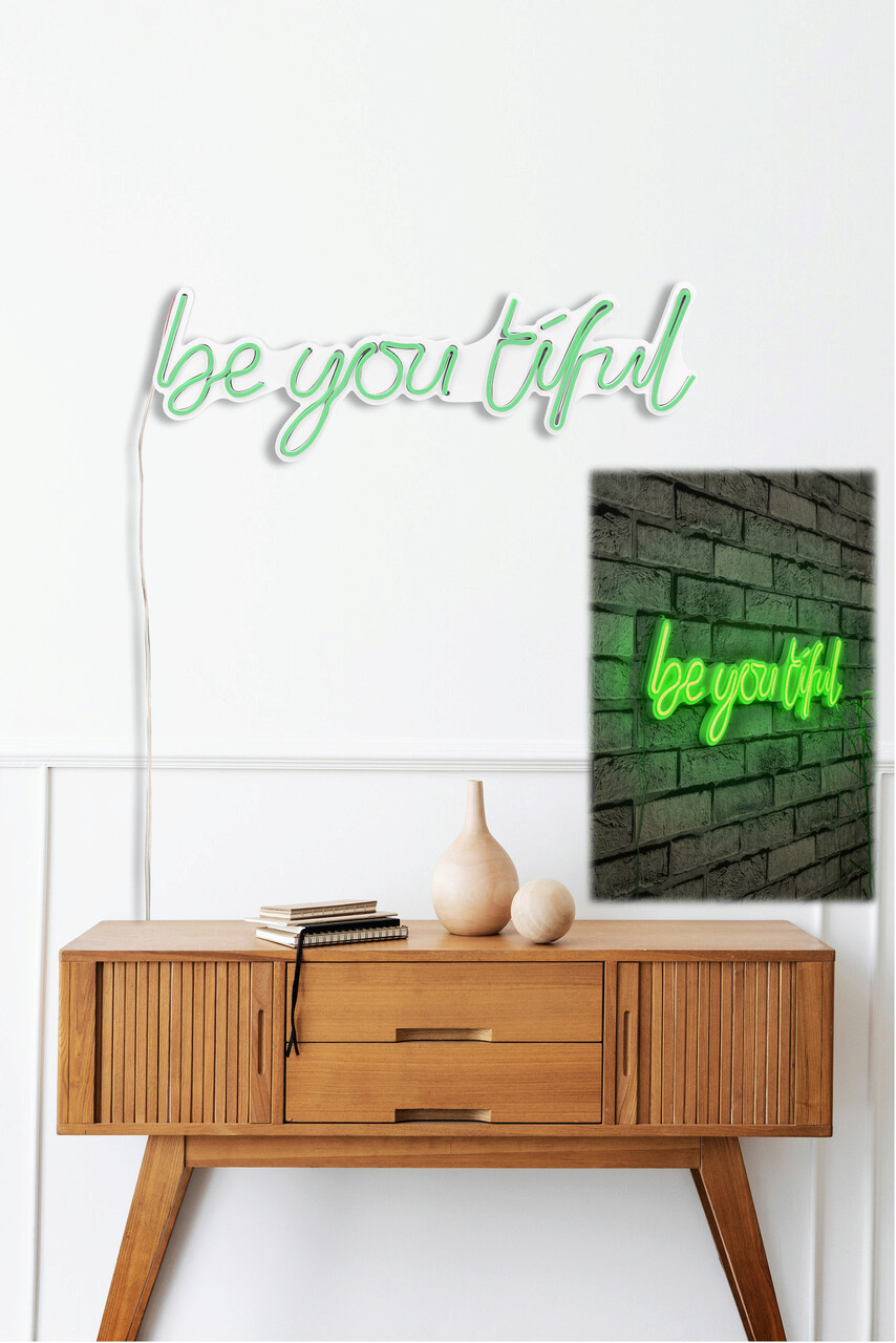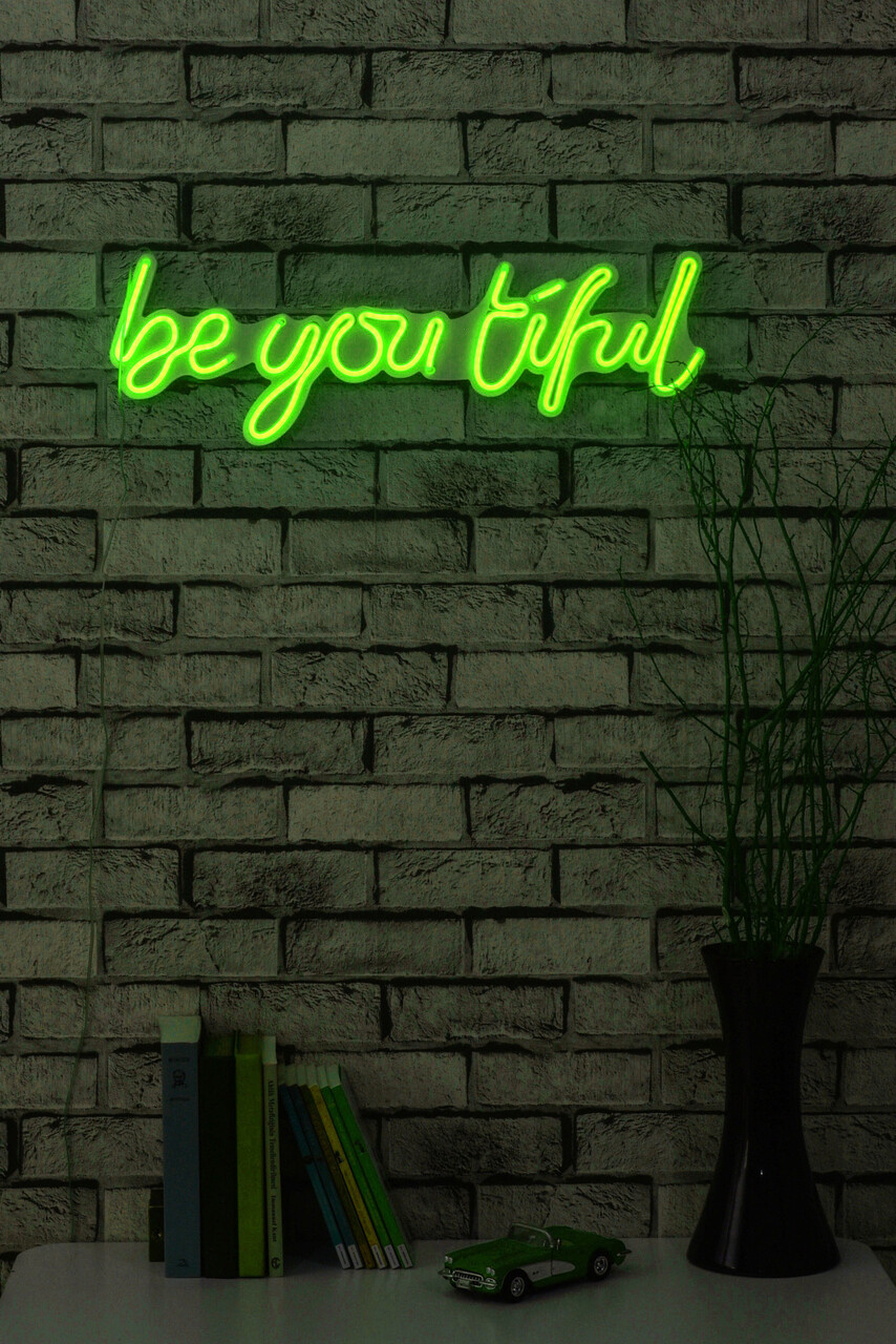 Decoratiune luminoasa LED, Be you tiful, Benzi flexibile de neon, DC 12 V, Verde