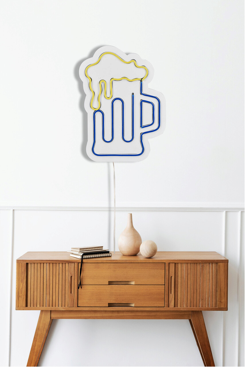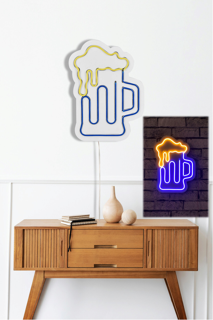 Decoratiune luminoasa LED, Beer Glass, Benzi flexibile de neon, DC 12 V, Albastru/Galben