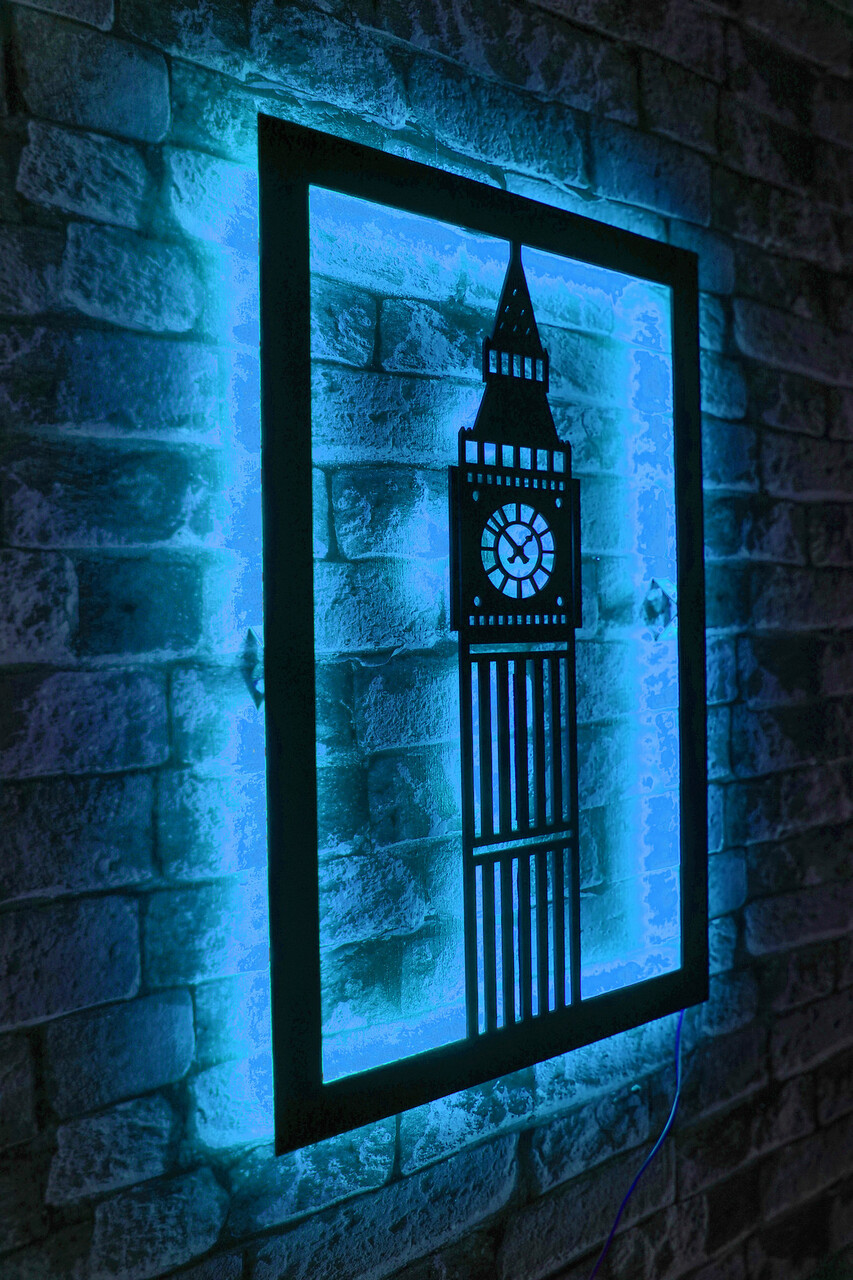 Decoratiune luminoasa LED, Big Ben, MDF, 60 LED-uri, Albastru