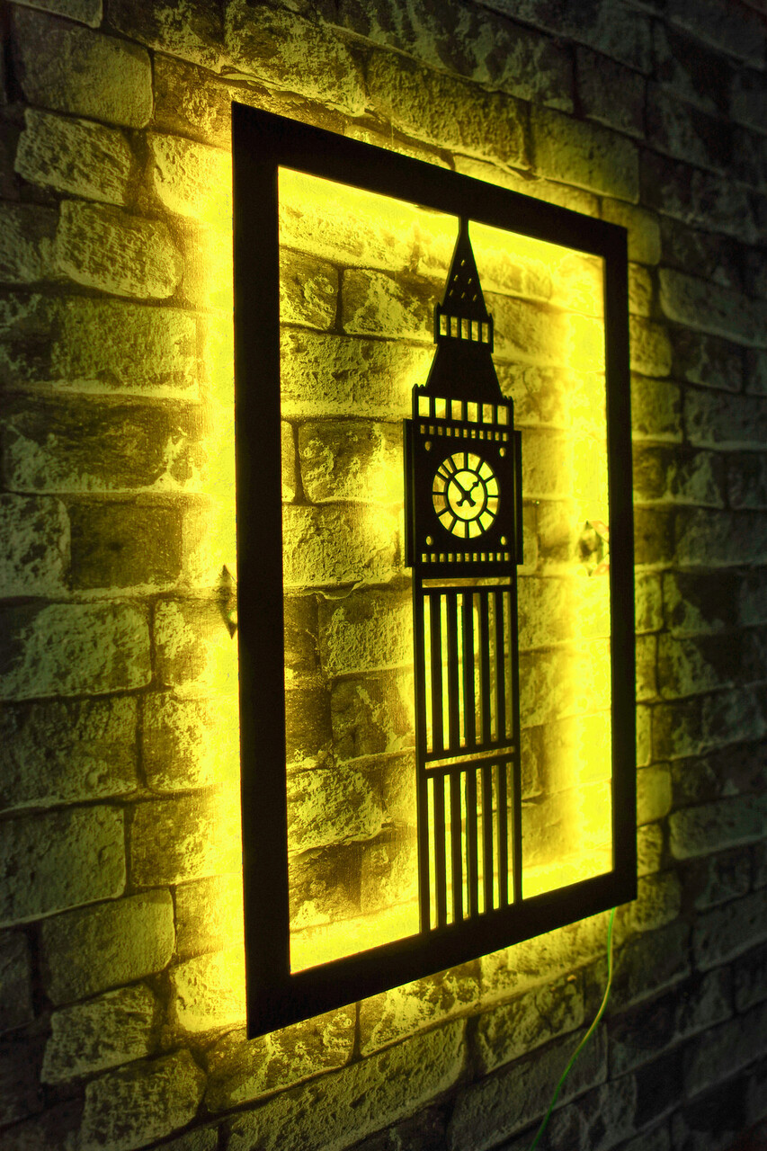 Decoratiune luminoasa LED, Big Ben, MDF, 60 LED-uri, Galben