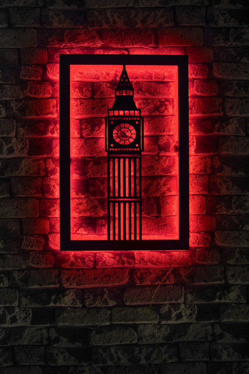Decoratiune luminoasa LED, Big Ben, MDF, 60 LED-uri, Rosu