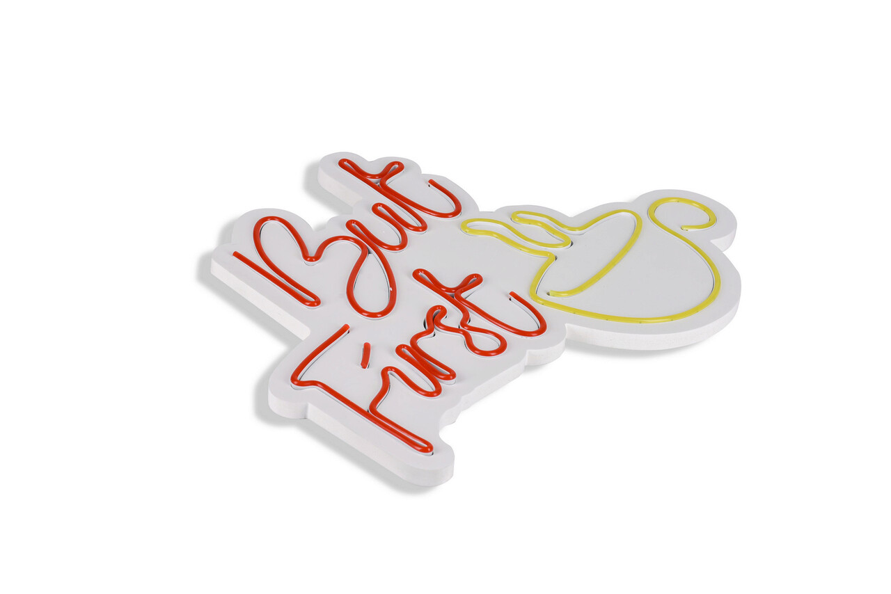Decoratiune luminoasa LED, But First Coffee, Benzi flexibile de neon, DC 12 V, Roșu / galben